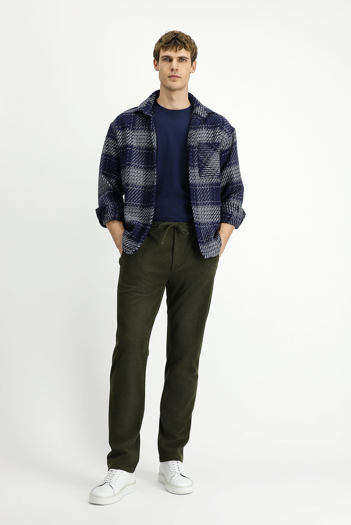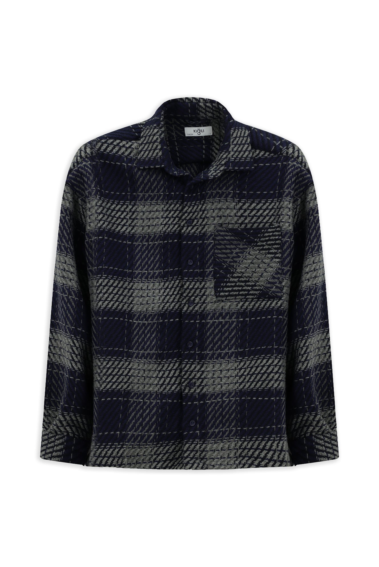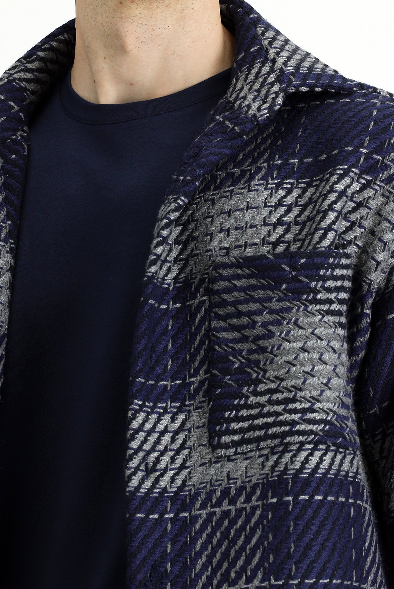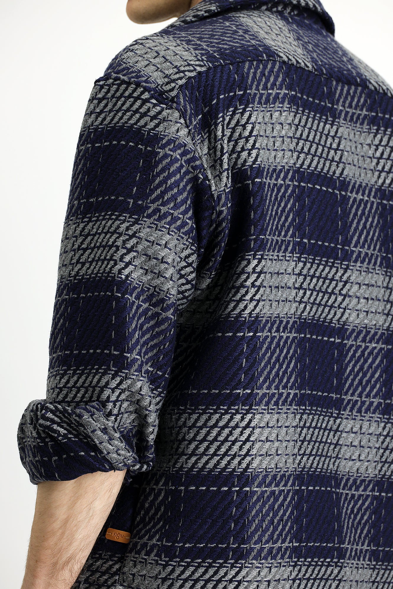 Orta Lacivert Uzun Kol Oversize Ekstra Rahat Kesim Spor Pamuklu Ekose Shacket Oduncu Gömlek / Mont