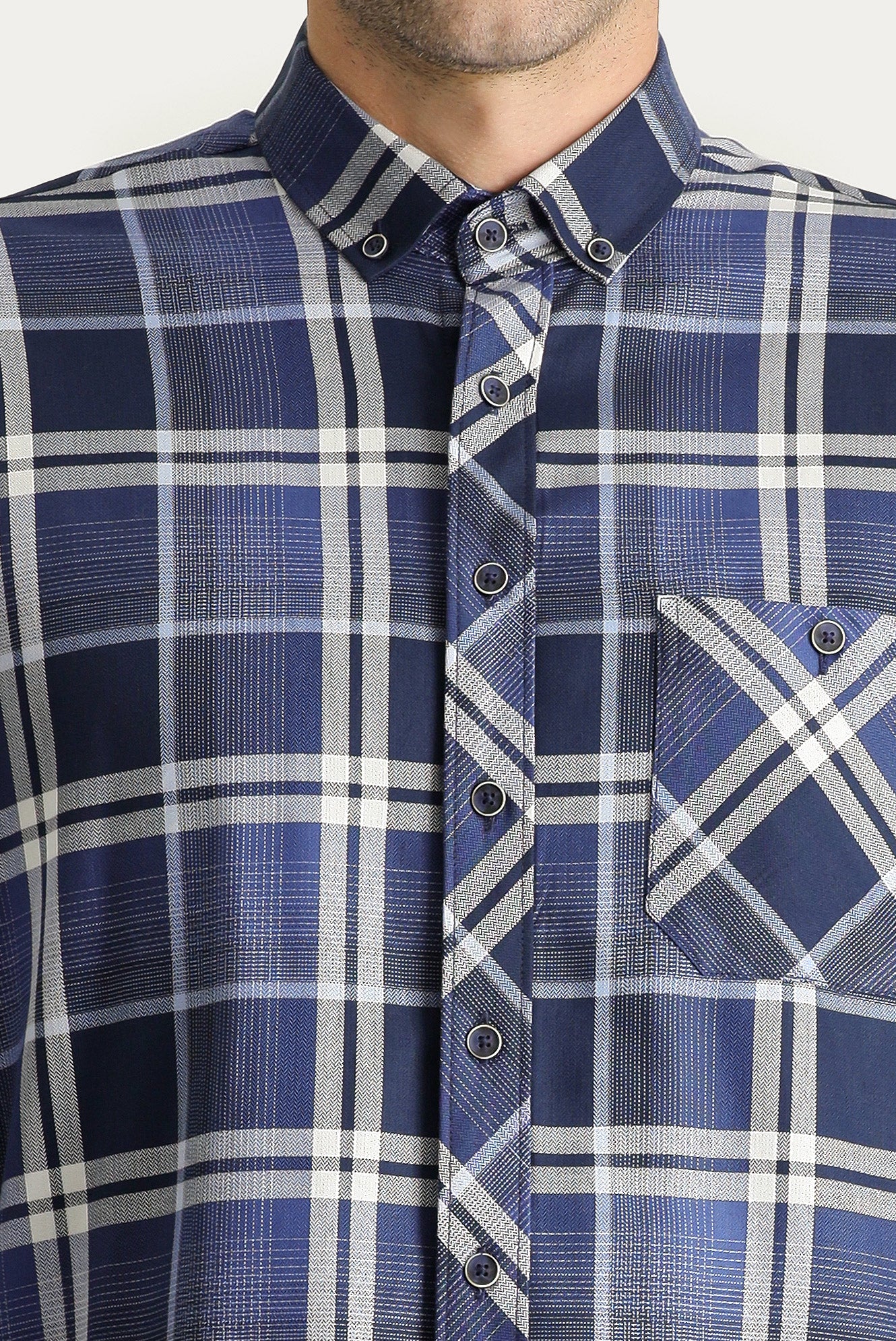Orta Lacivert Uzun Kol Regular Fit Ekose Pamuk Gömlek