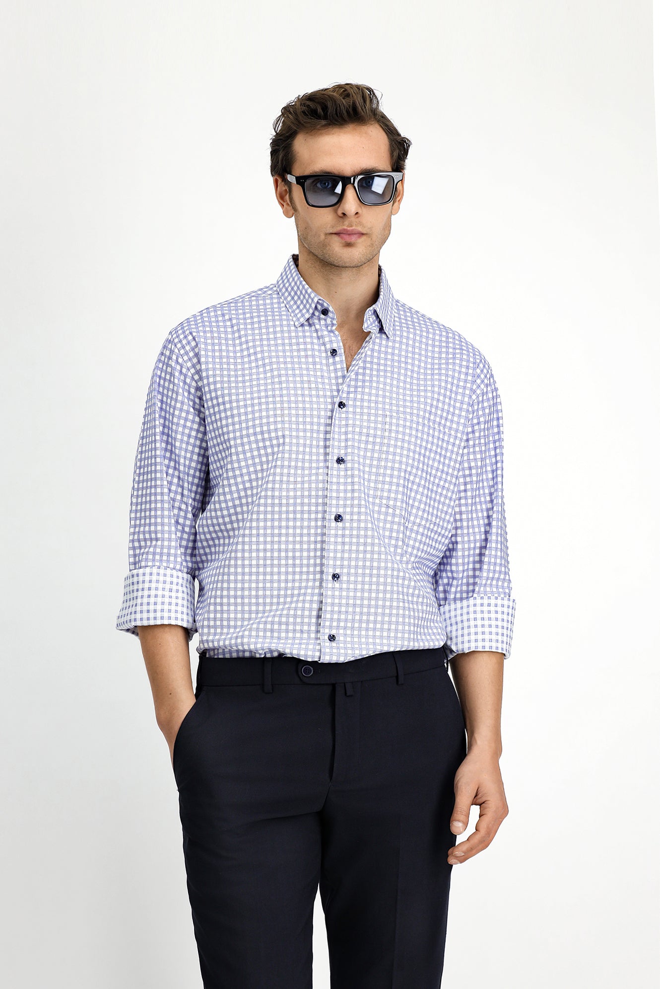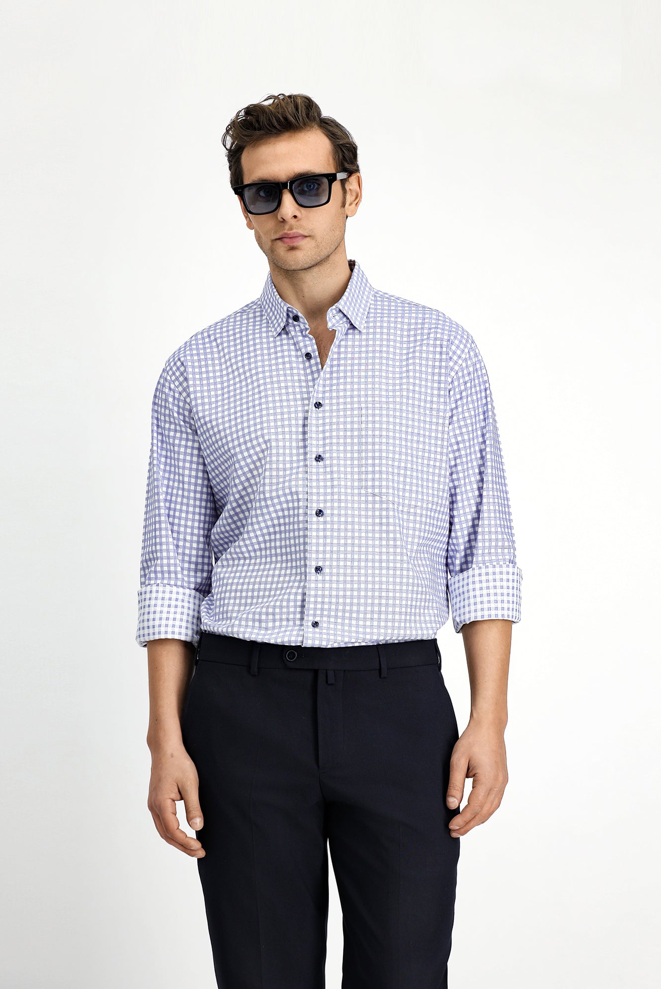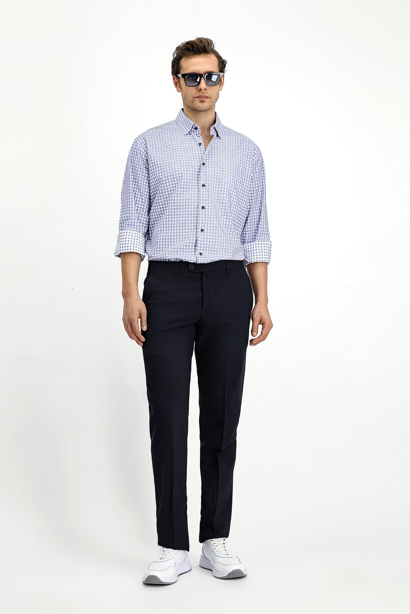 Orta Lacivert Uzun Kol Regular Fit Pamuk Ekose Gömlek