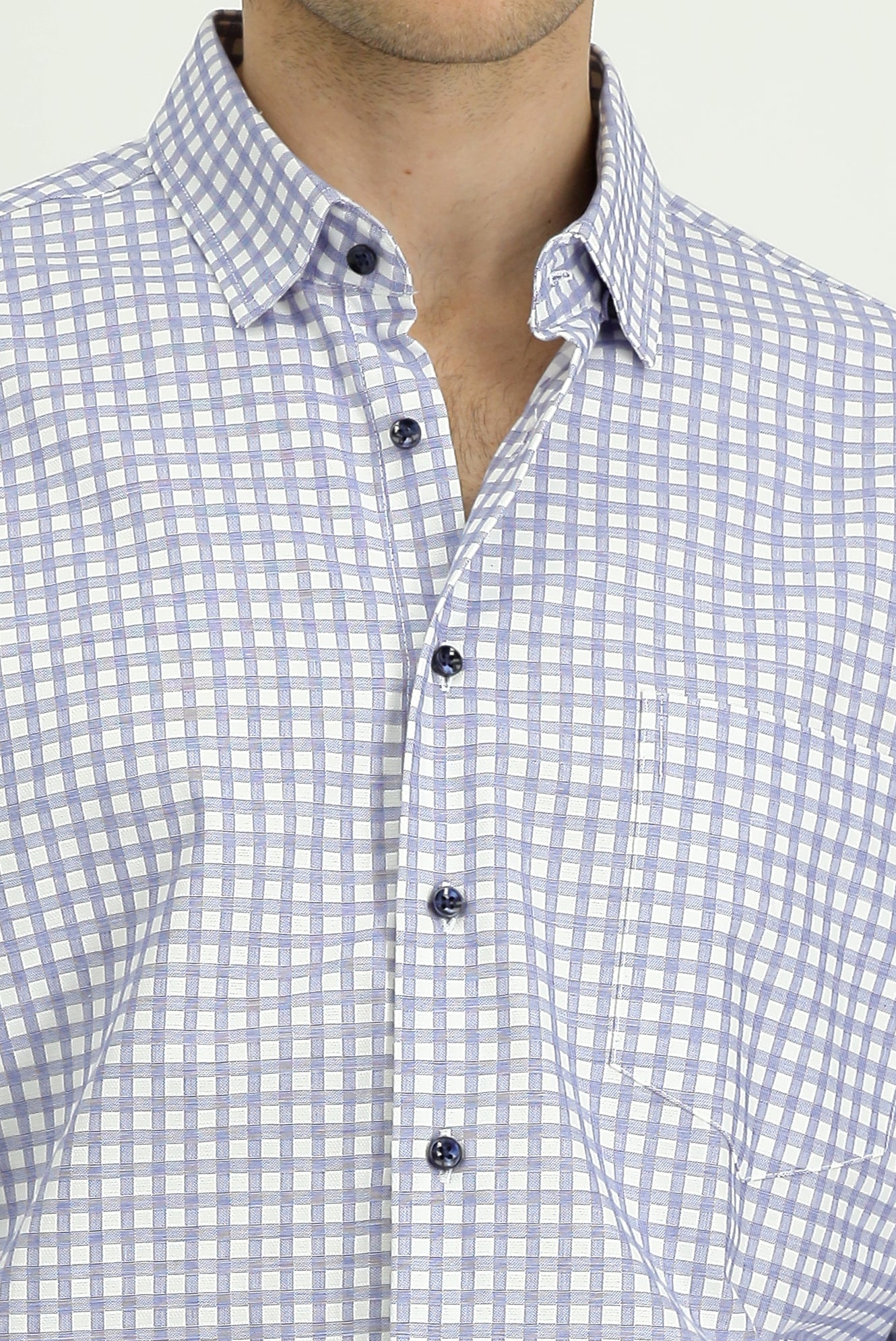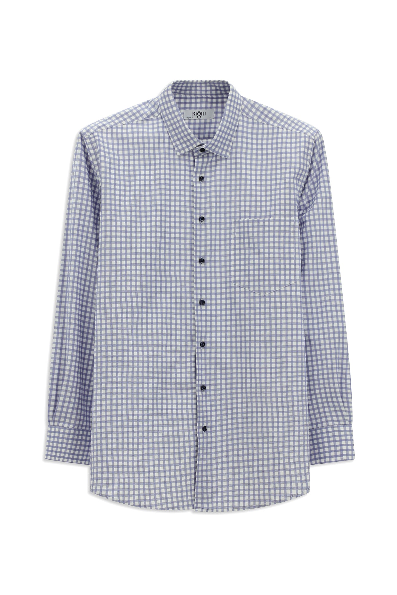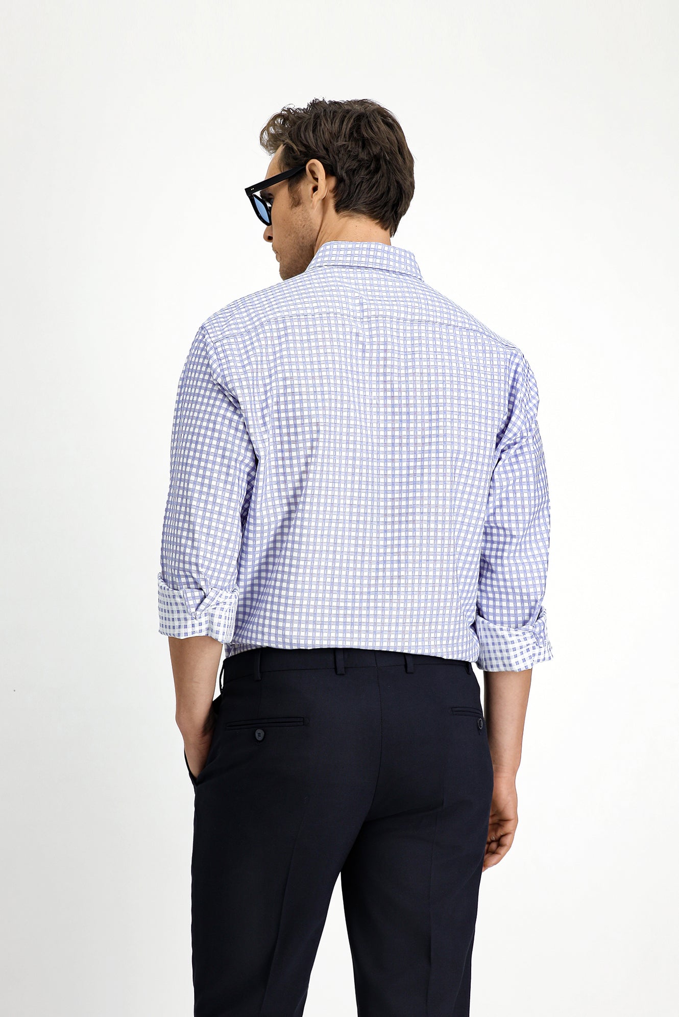 Orta Lacivert Uzun Kol Regular Fit Pamuk Ekose Gömlek