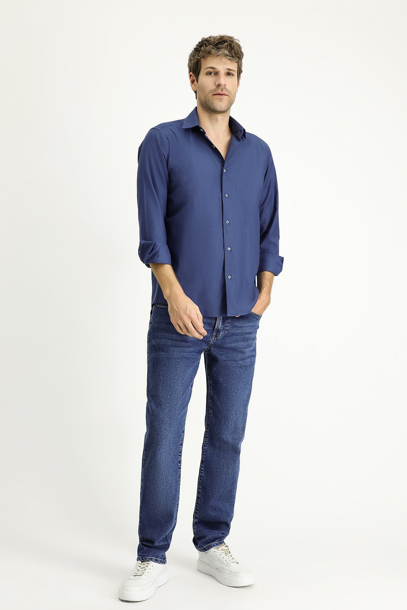 Orta Lacivert Uzun Kol Regular Fit Spor Pamuk Gömlek