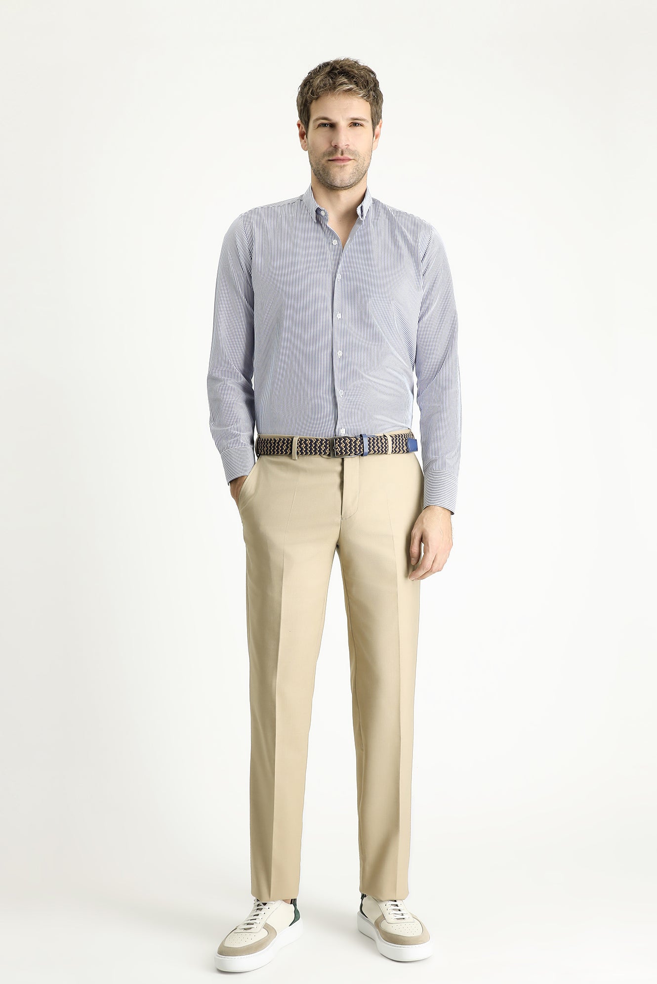 Orta Lacivert Uzun Kol Slim Fit Dar Kesim Çizgili Pamuklu Kolay Ütülenebilir Gömlek