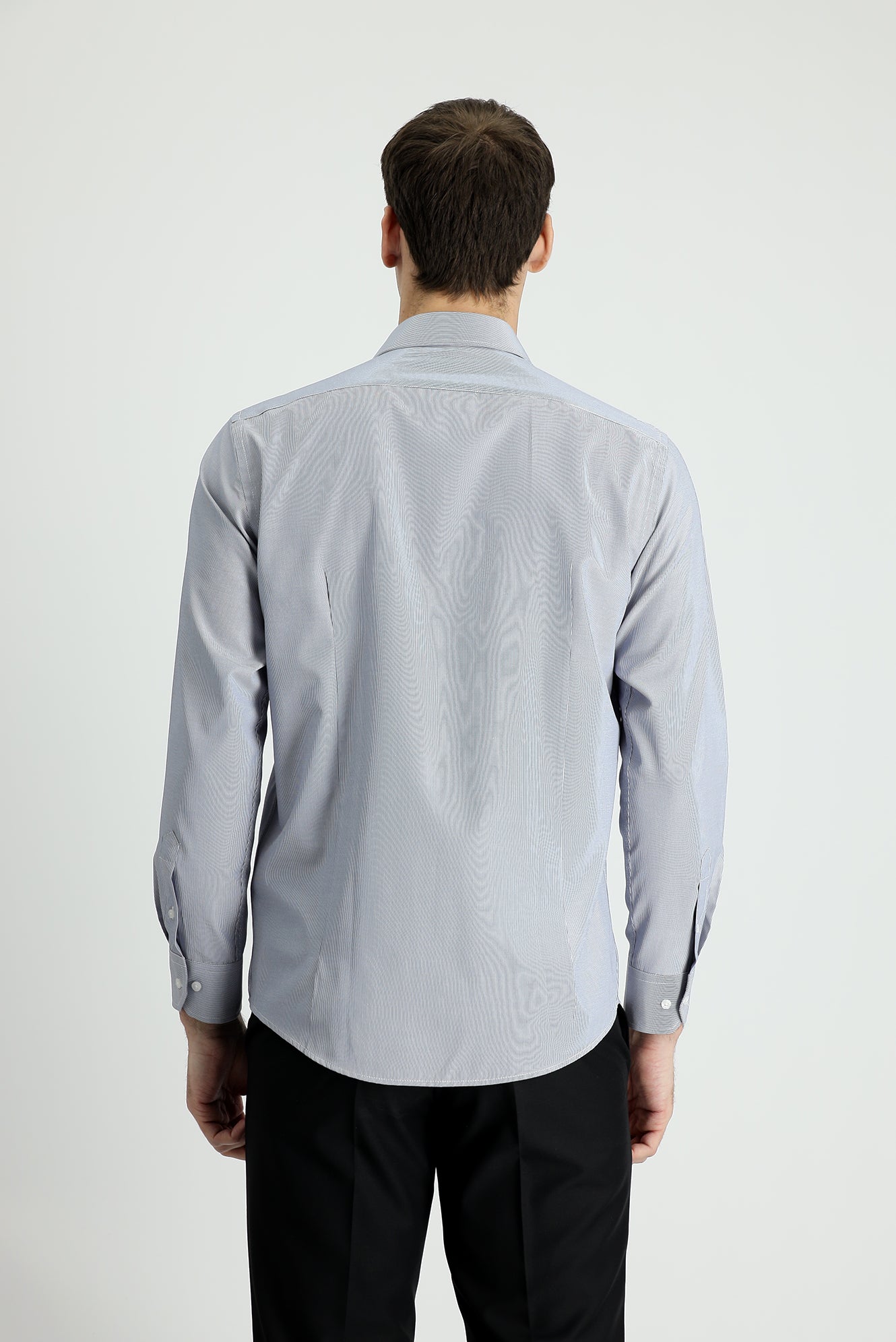 Orta Lacivert Uzun Kol Slim Fit Dar Kesim Klasik Çizgili Pamuklu Kolay Ütülenebilir Gömlek