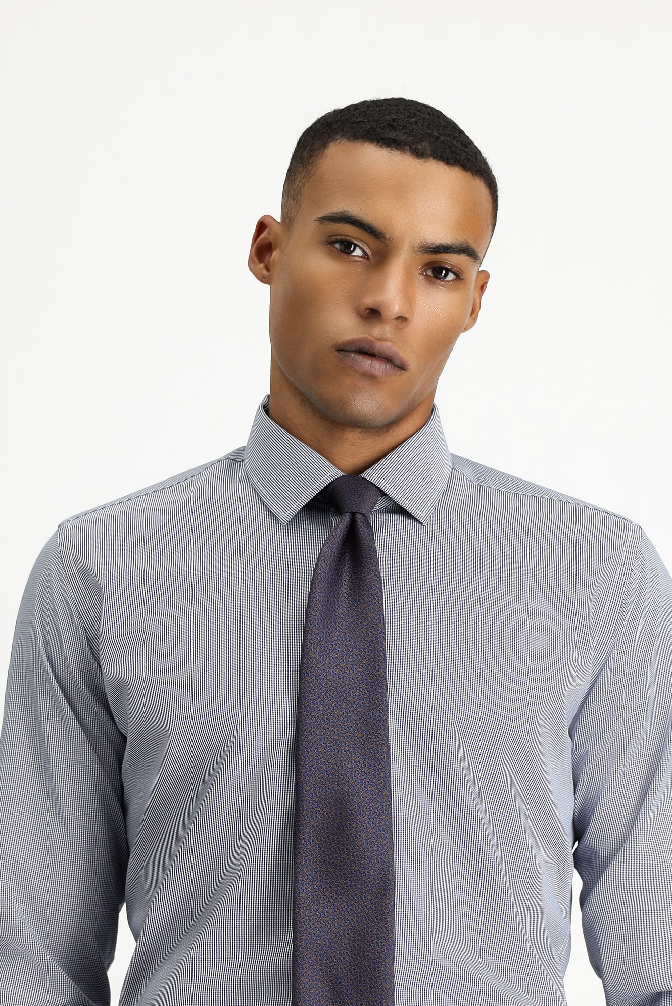 Orta Lacivert Uzun Kol Slim Fit Dar Kesim Klasik Desenli Pamuklu Kolay Ütülenebilir Gömlek