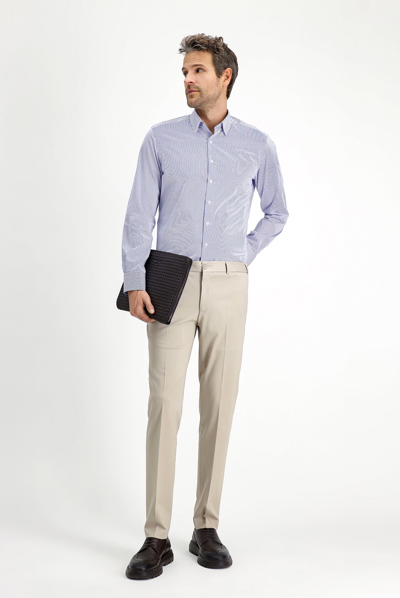 Orta Lacivert Uzun Kol Slim Fit Dar Kesim Klasik Ekose Pamuk Gömlek