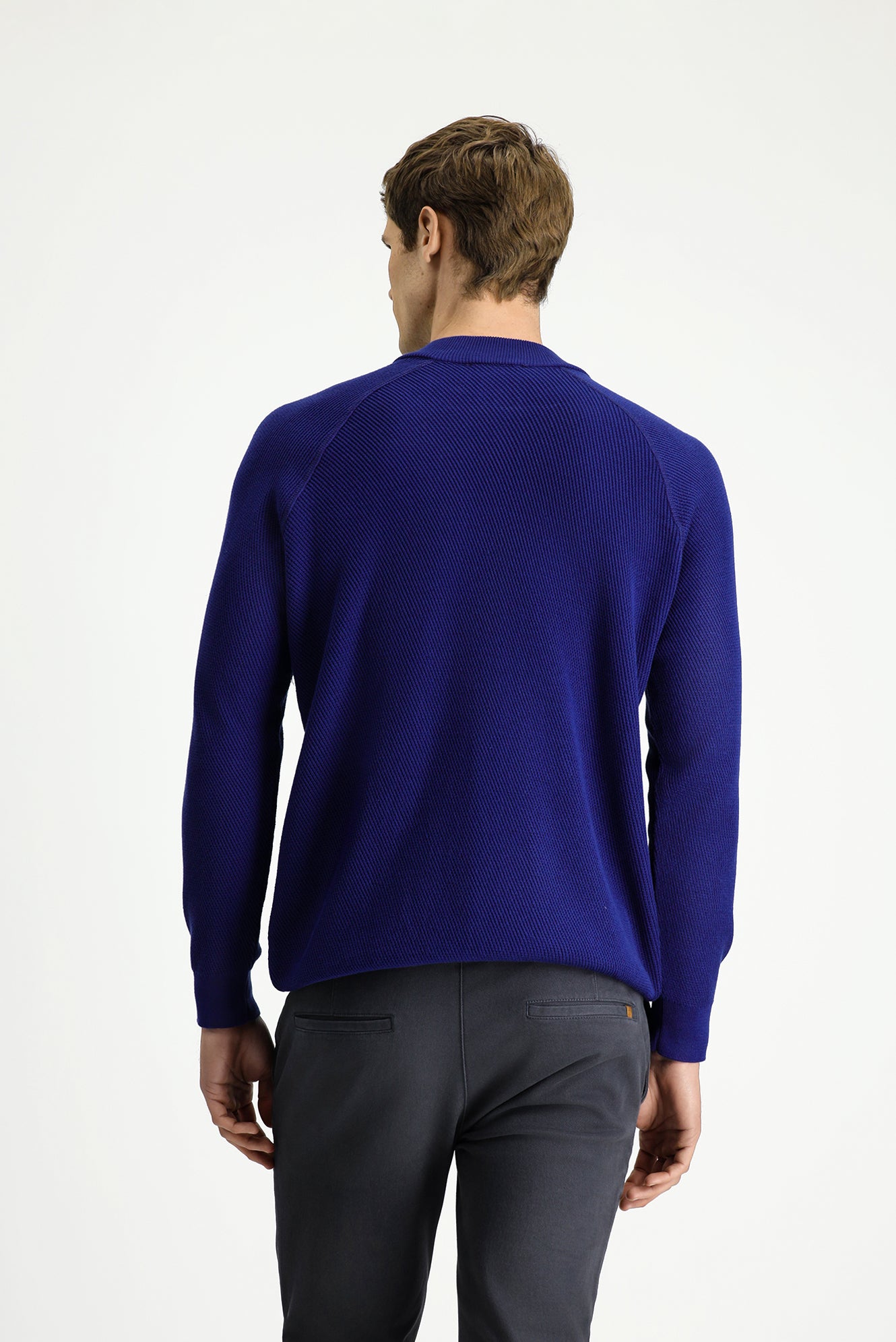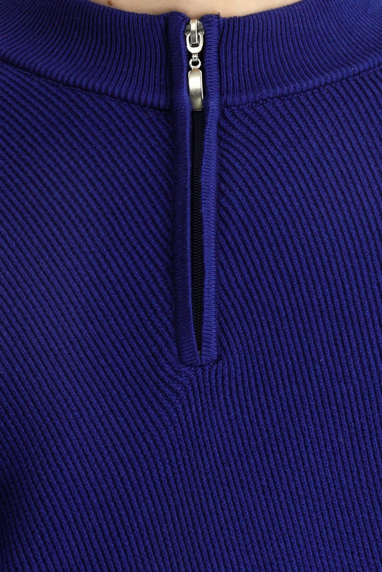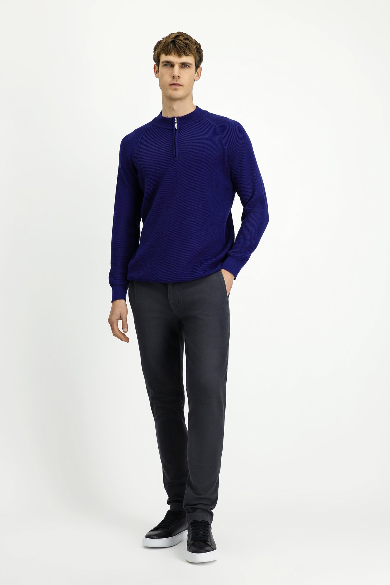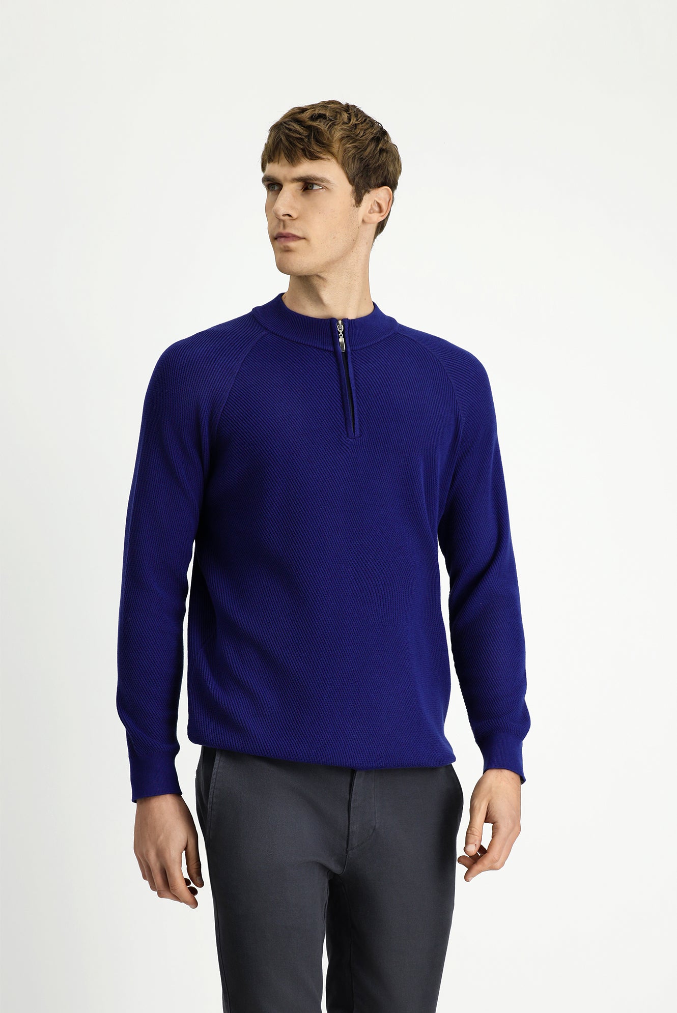 Orta Lacivert Yarım Balıkçı Yaka Regular Fit Fermuarlı Desenli Pamuklu Triko Kazak