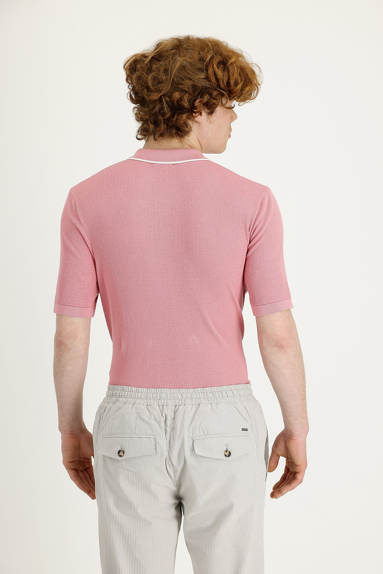Orta Pembe Polo Yaka Slim Fit Dar Kesim Tişört