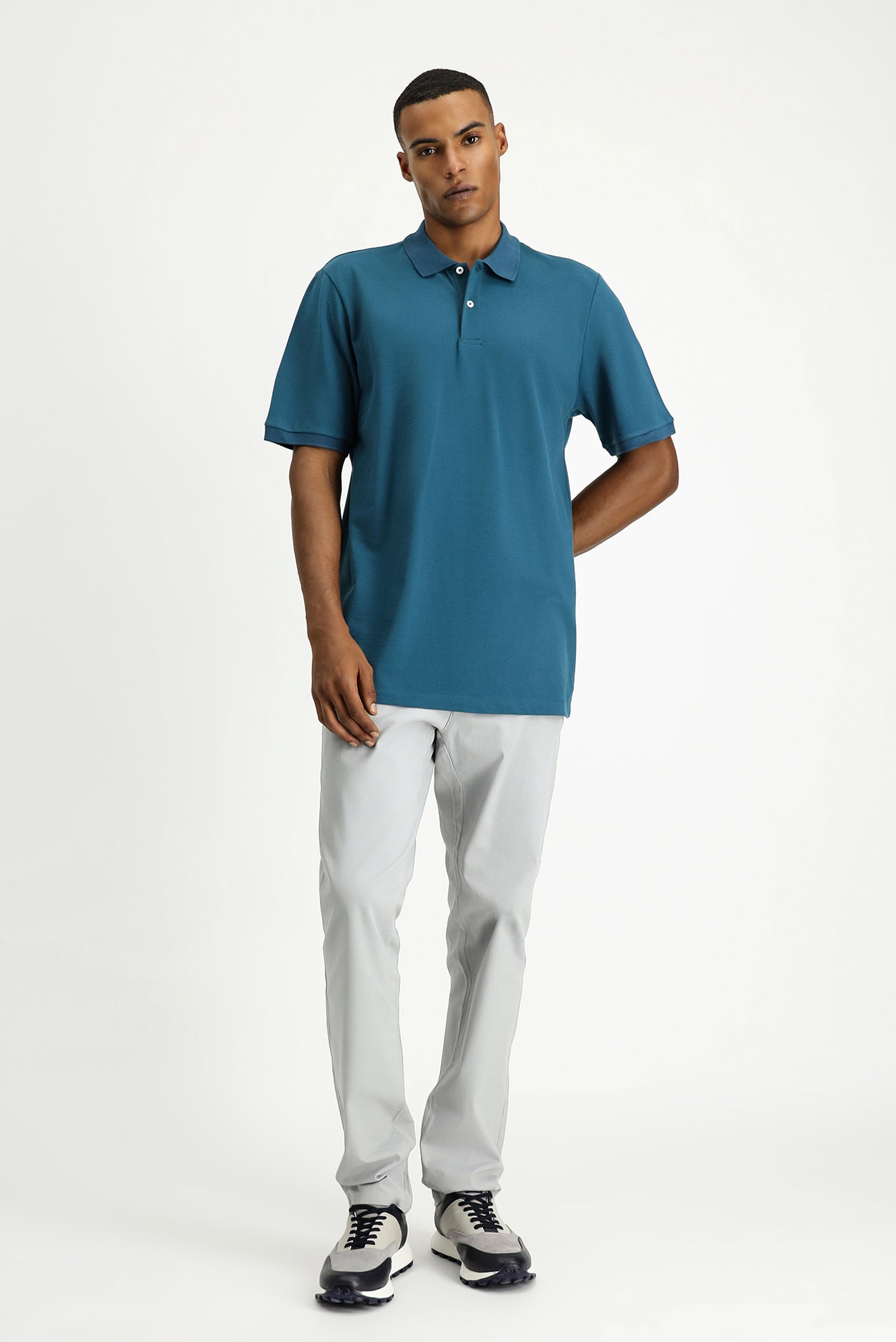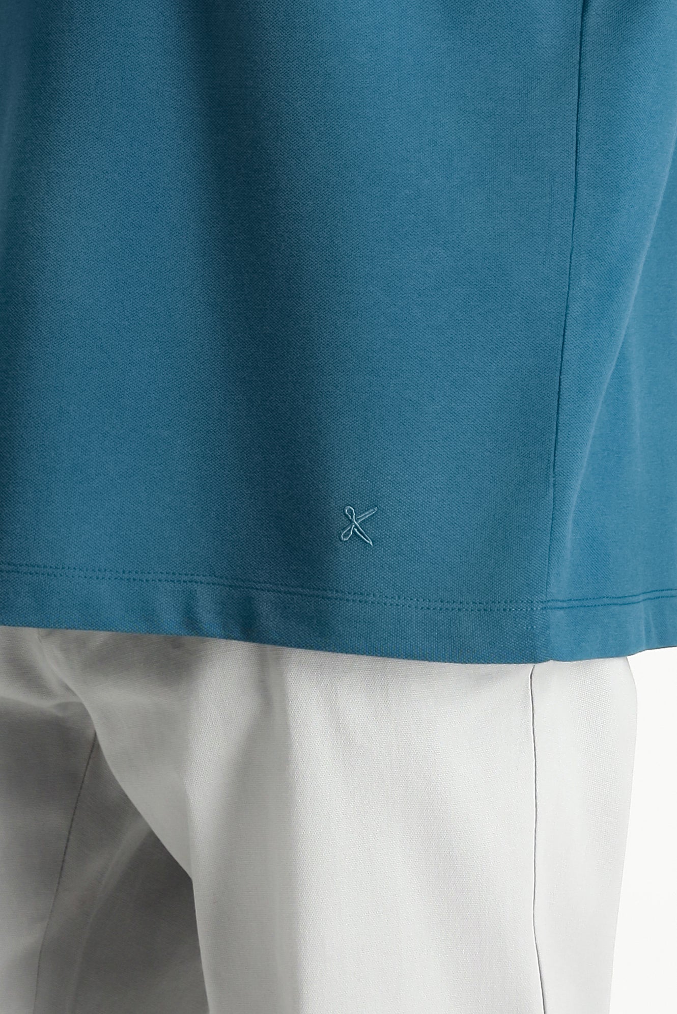 Orta Petrol Polo Yaka Regular Fit Nakışlı Tişört