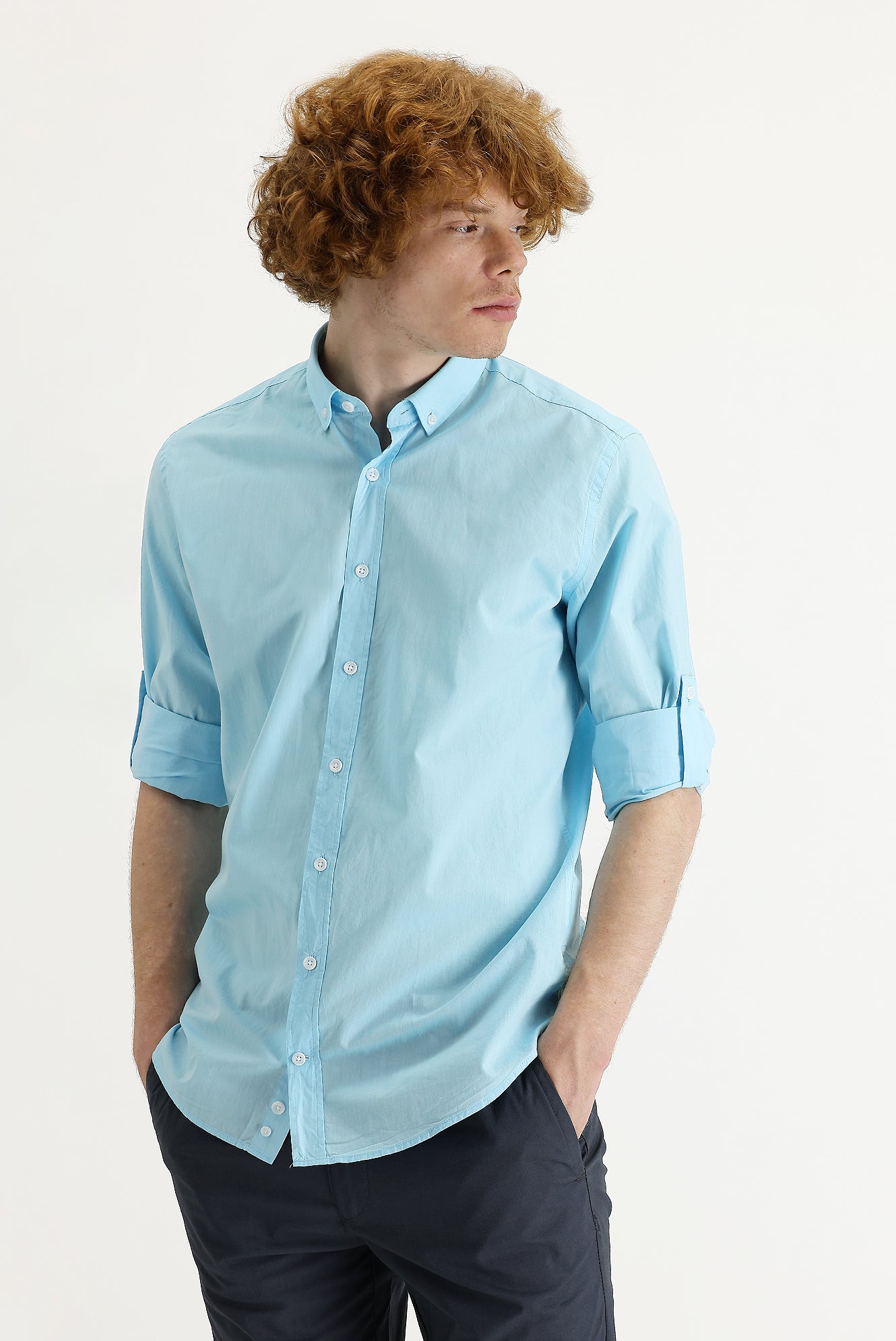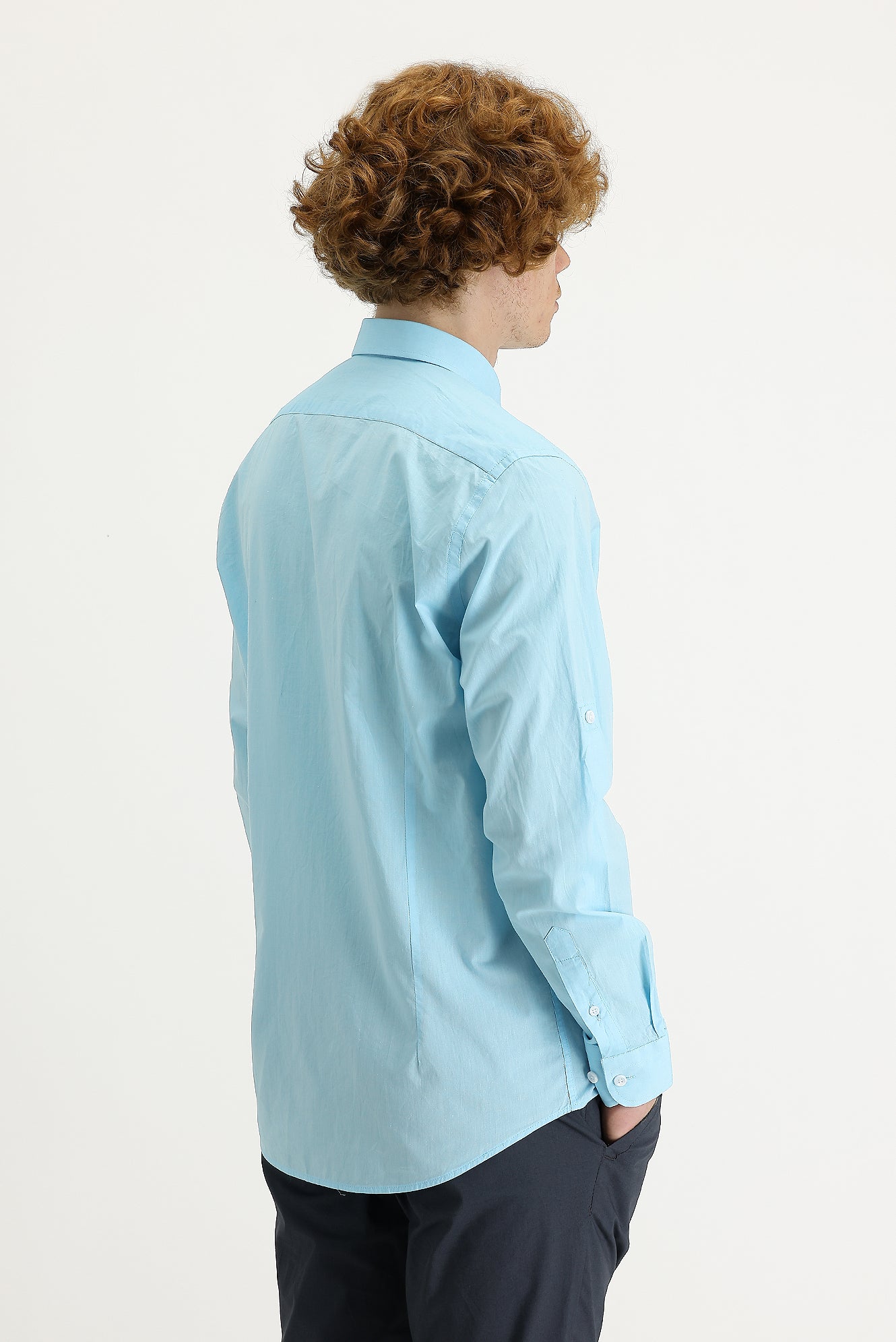 Orta Turkuaz Uzun Kol Slim Fit Dar Kesim Pamuk Gömlek