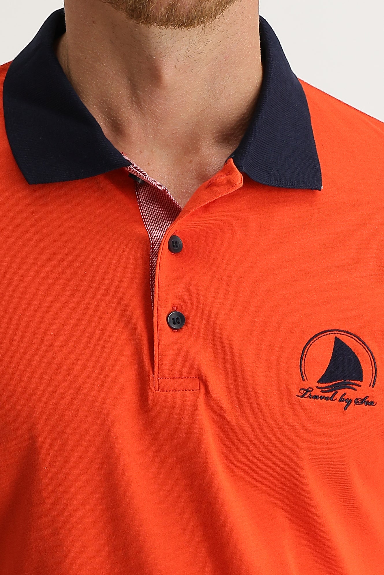 Orta Turuncu Polo Yaka Slim Fit Dar Kesim Desenli Tişört