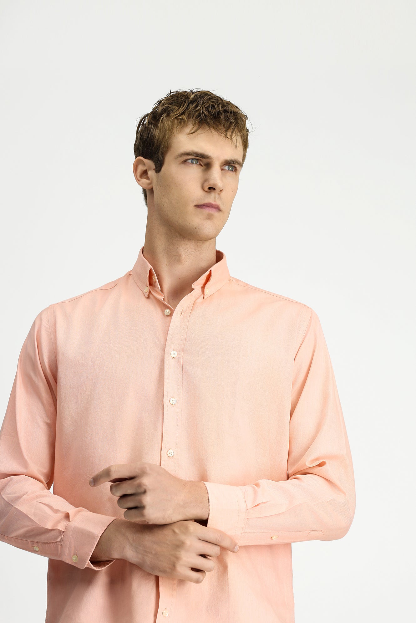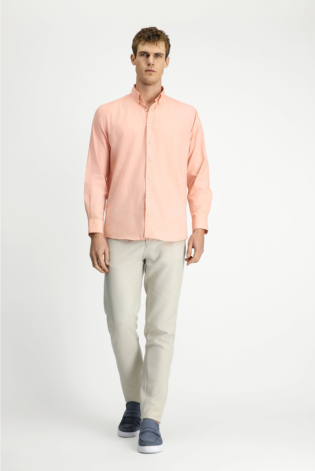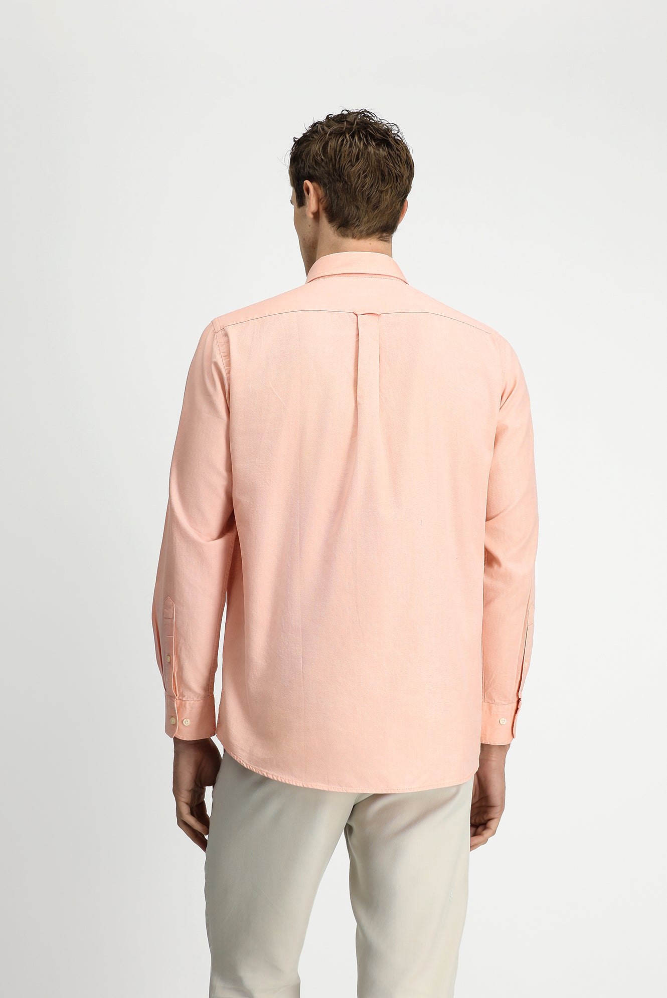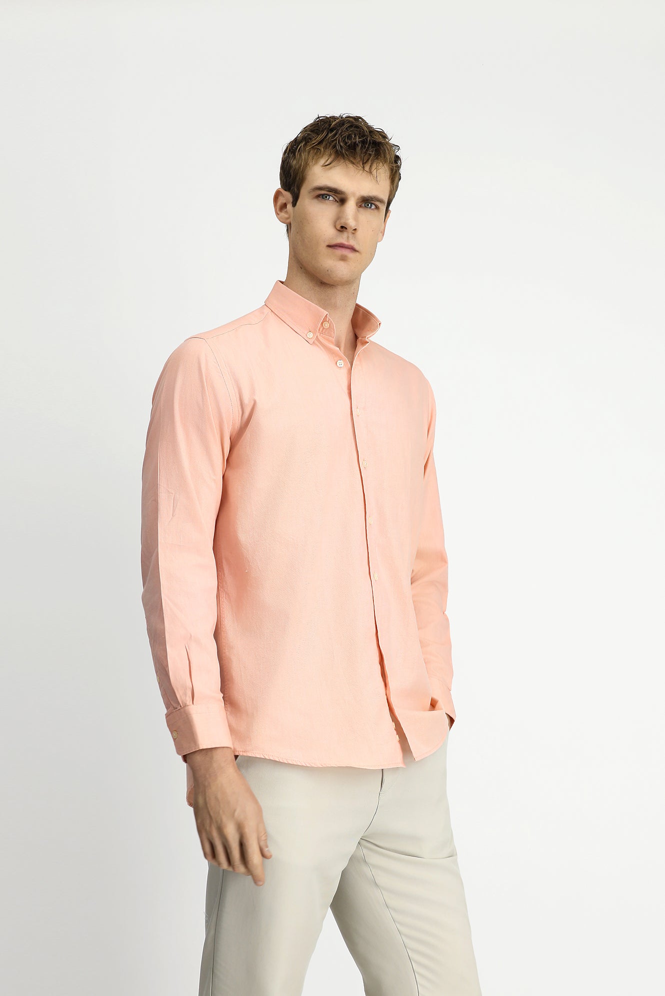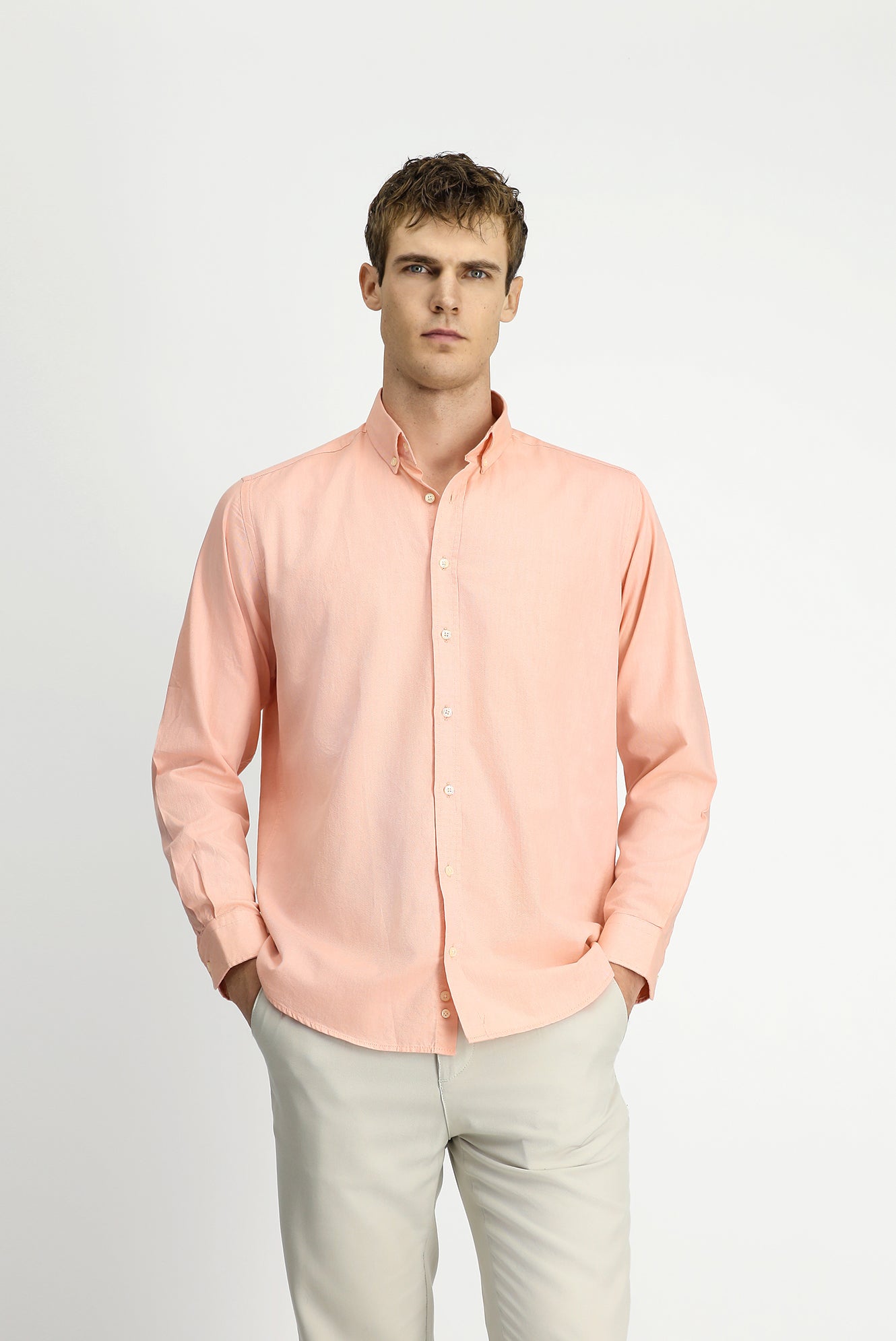 Orta Turuncu Uzun Kol Regular Fit Düğmeli Yaka Oxford Pamuk Gömlek