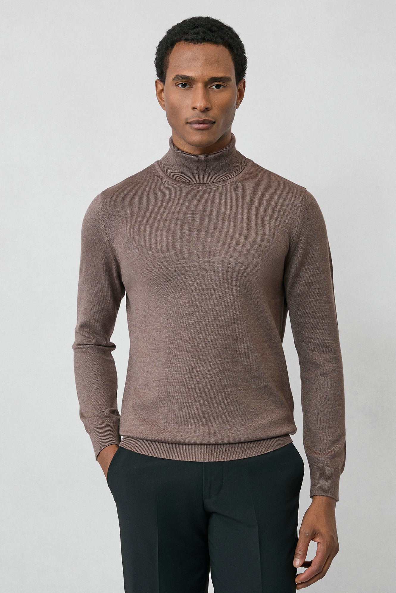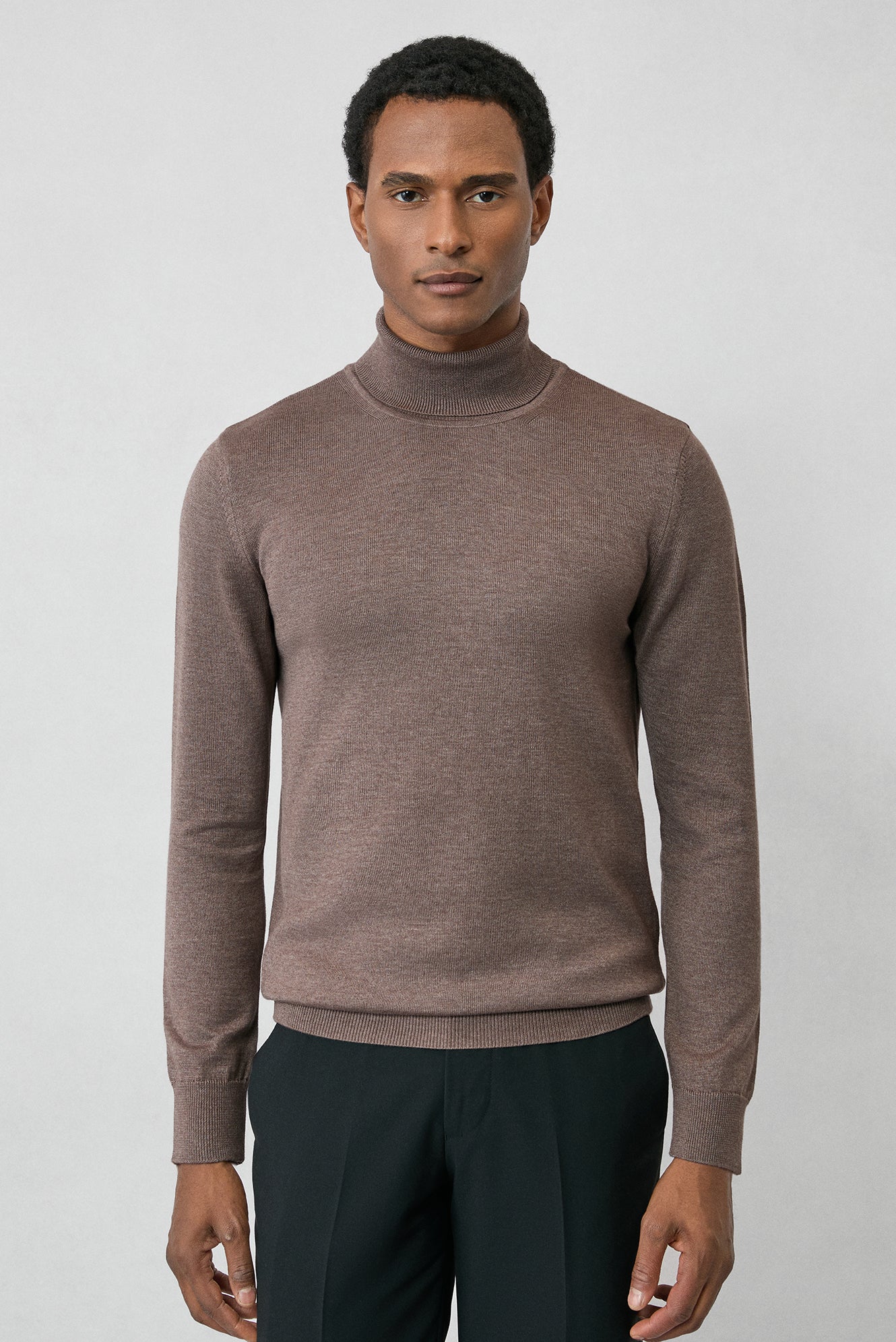 Orta Vizon Balıkçı Yaka Regular Fit Pamuklu Örme Triko Kazak