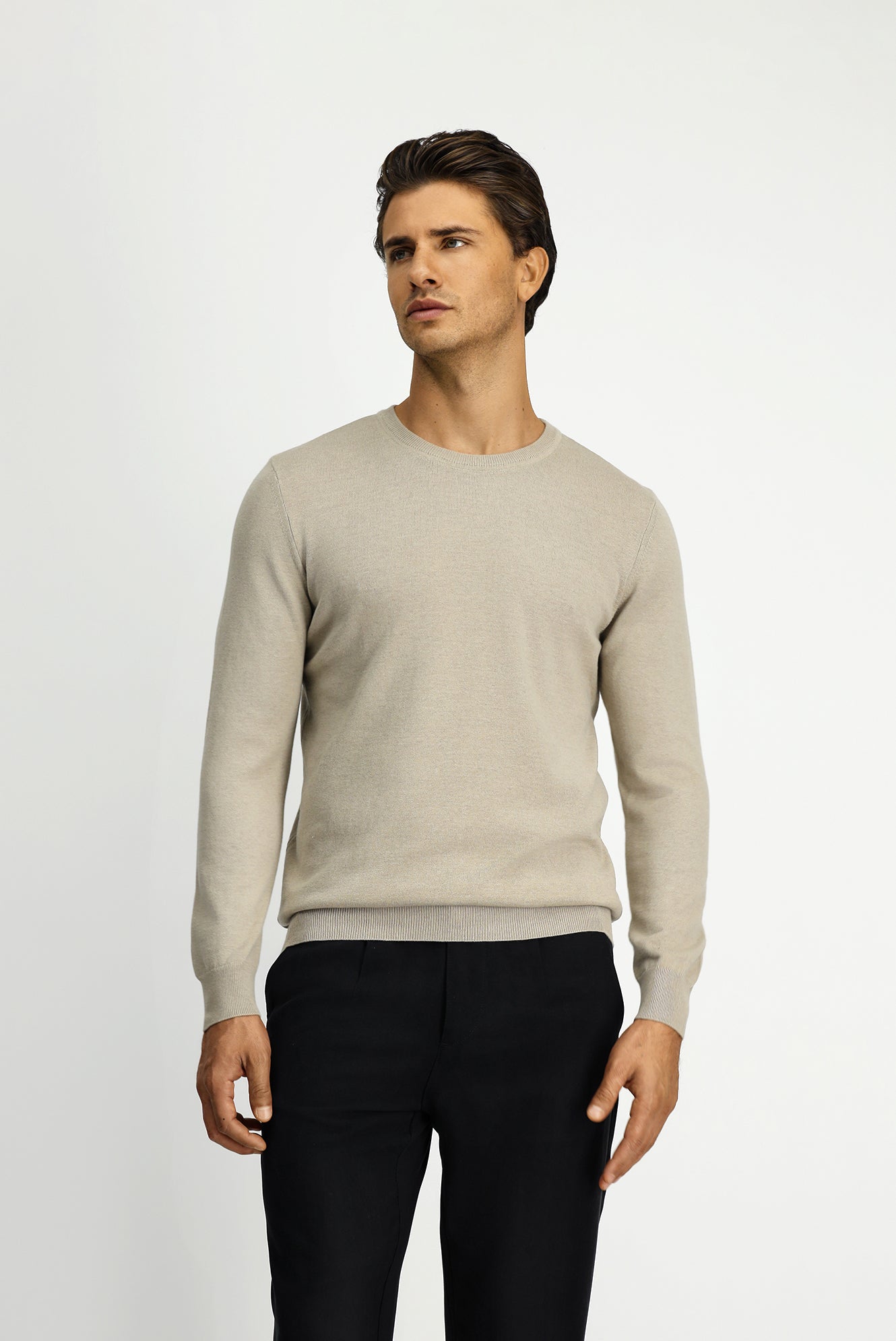 Orta Vizon Bisiklet Yaka Regular Fit Pamuklu Kaşmirli Triko Kazak