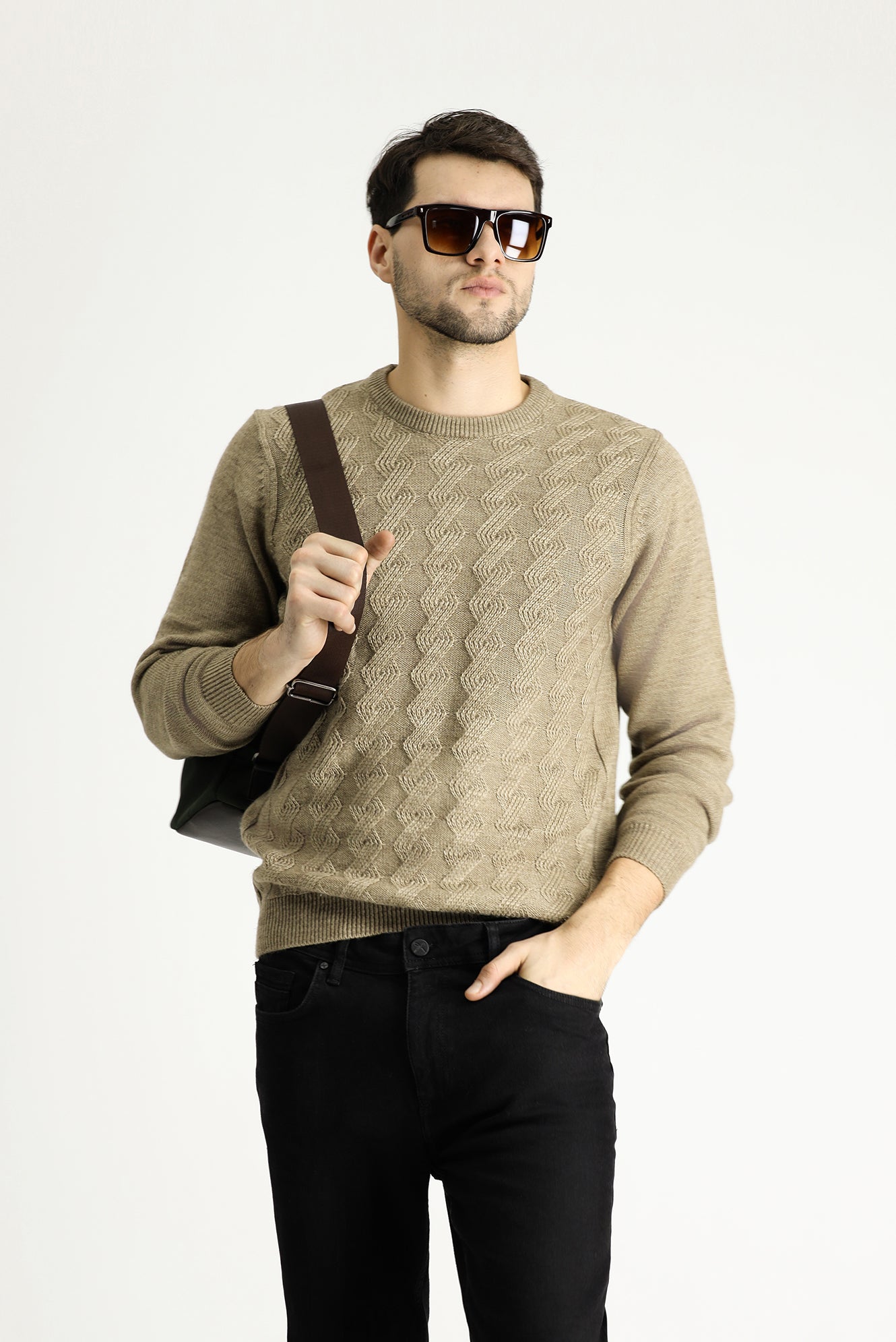 Orta Vizon Bisiklet Yaka Slim Fit Dar Kesim Desenli Triko Kazak