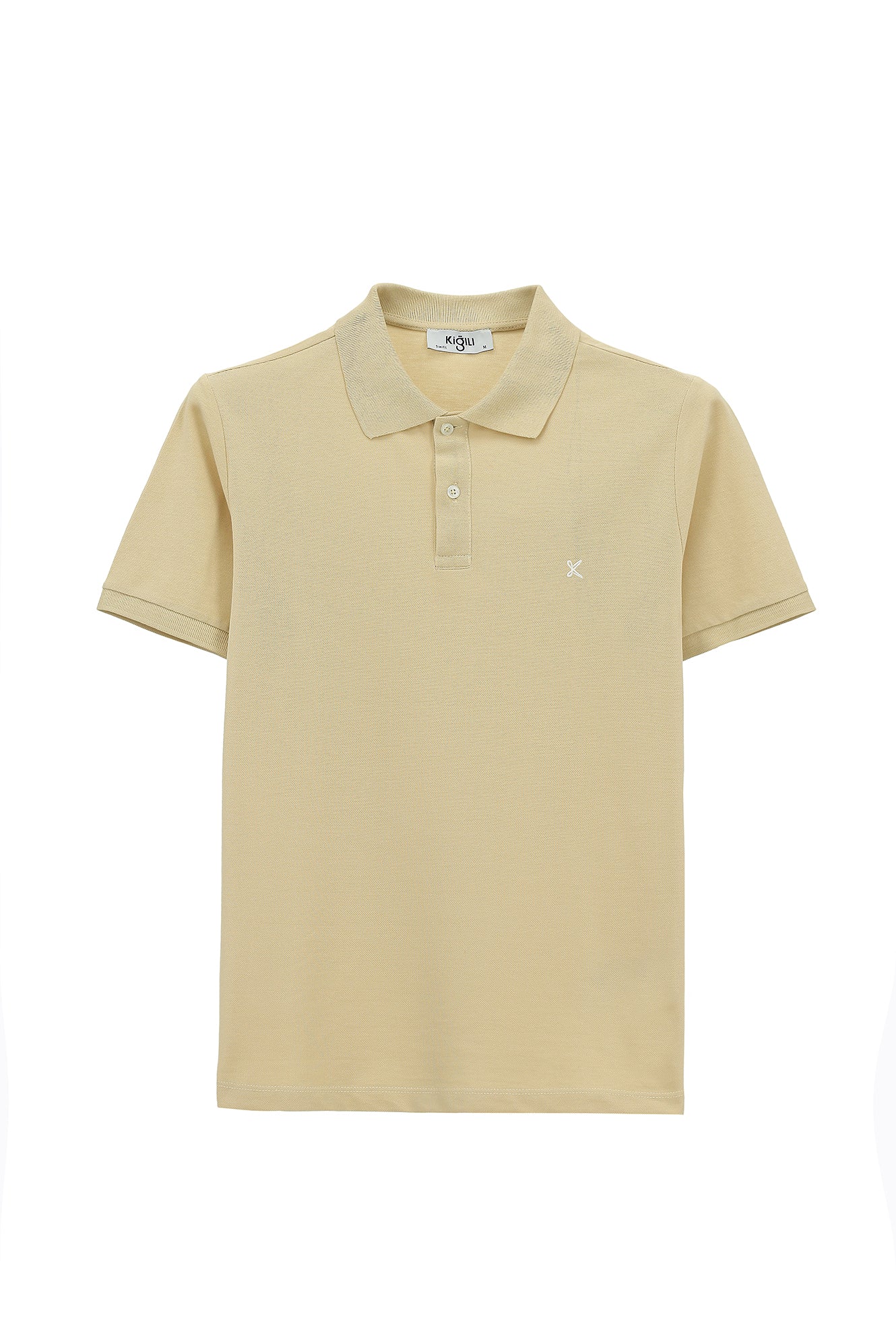 Orta Vizon Polo Yaka Slim Fit Nakışlı %100 Pamuk Tişört