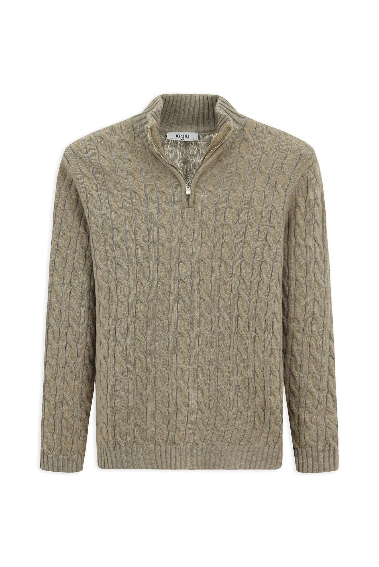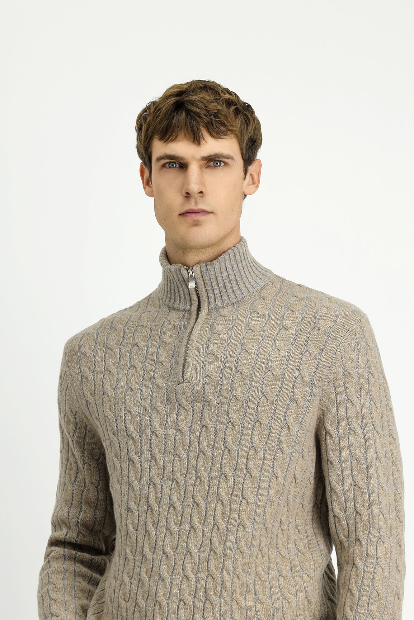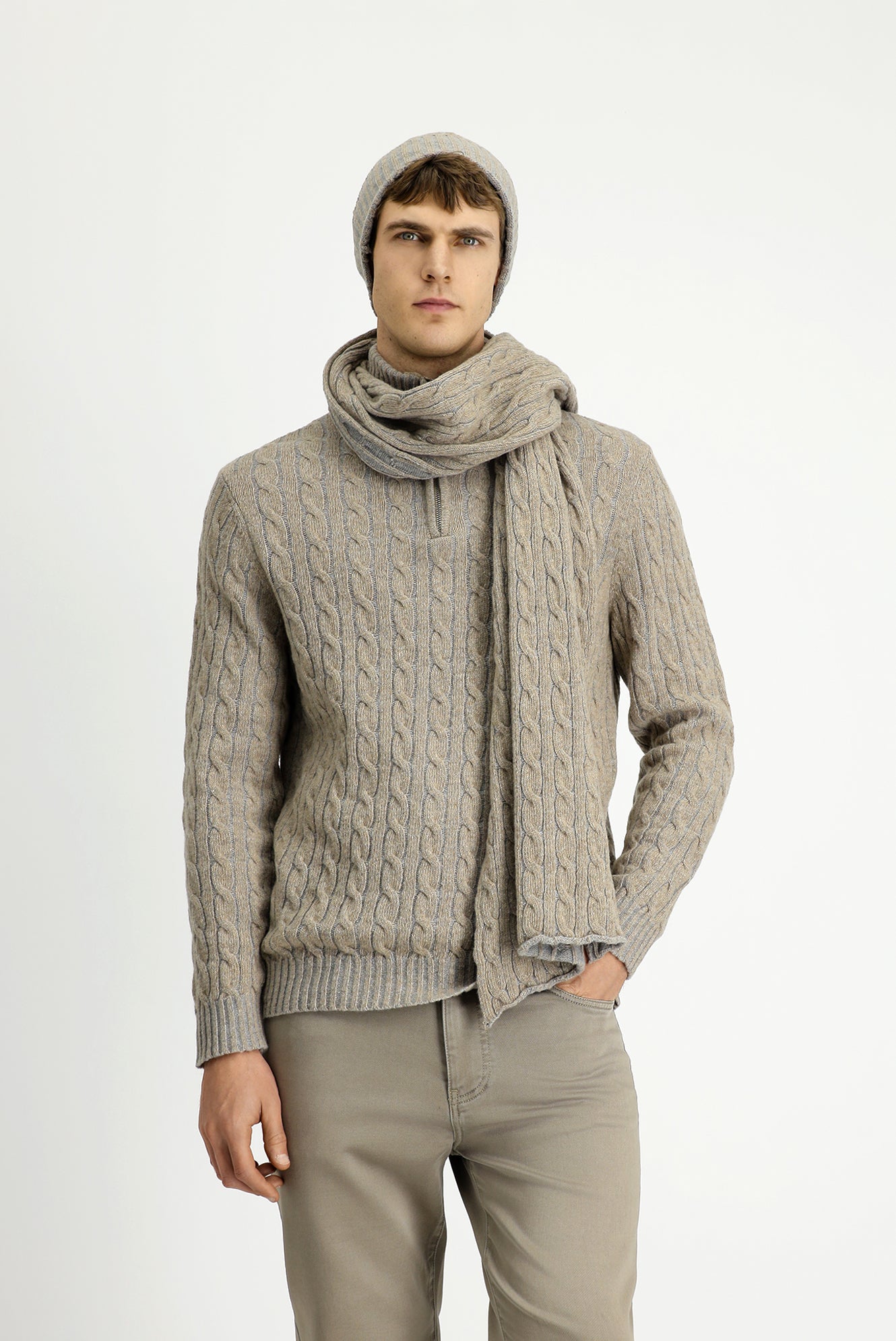 Orta Vizon Yarım Balıkçı Yaka Regular Fit Desenli Yünlü Triko Kazak