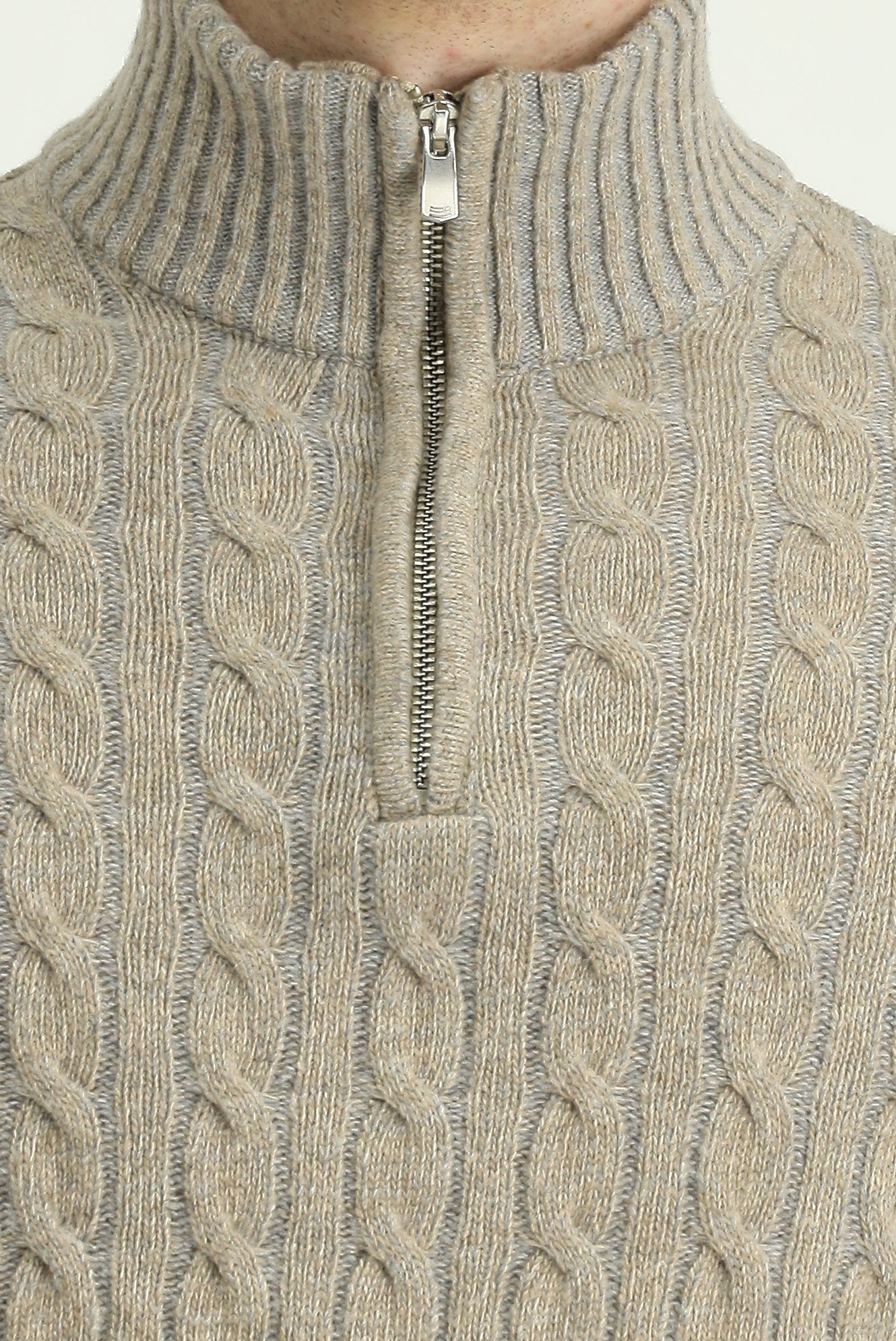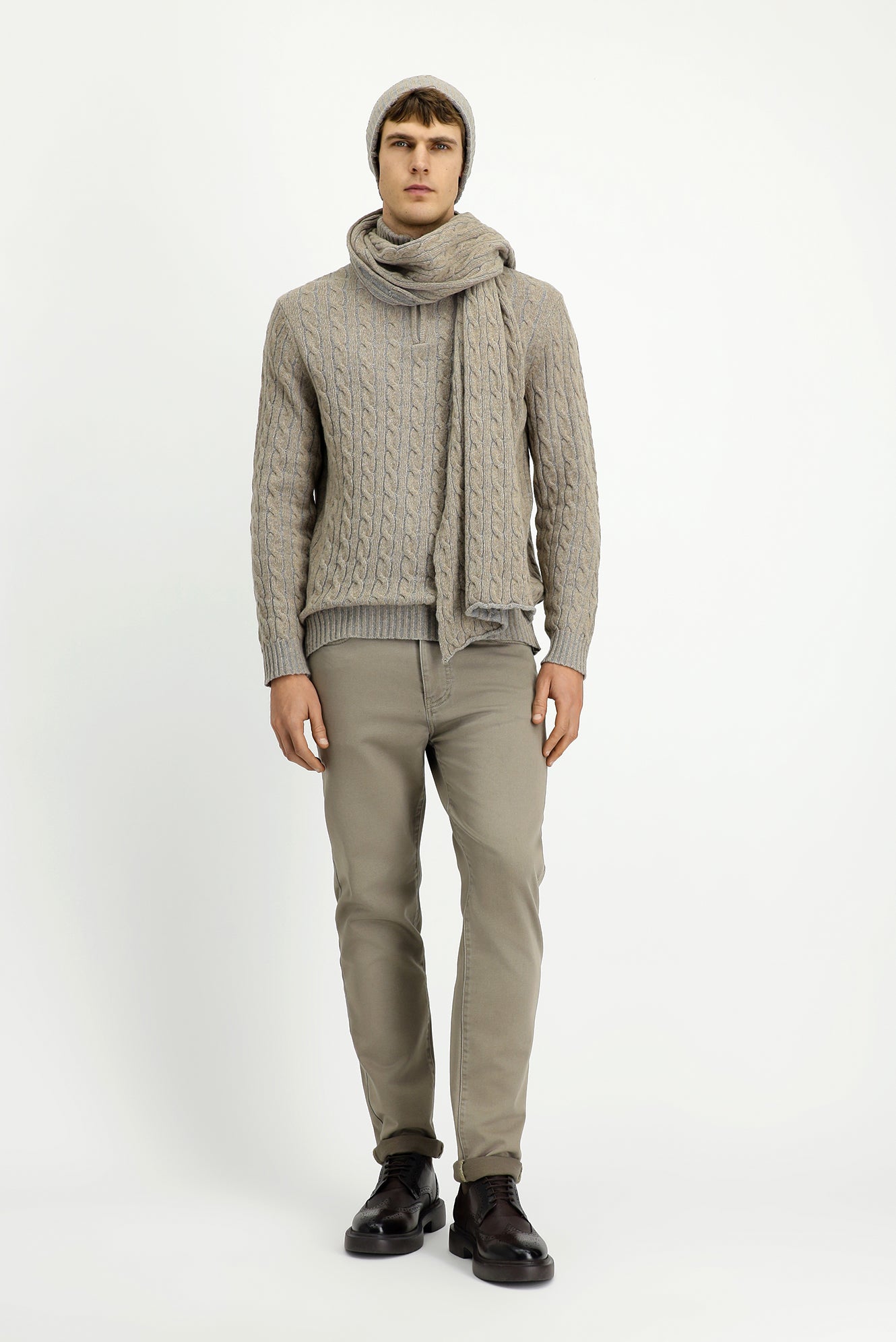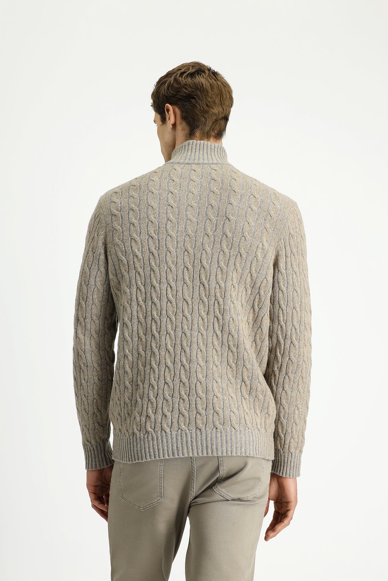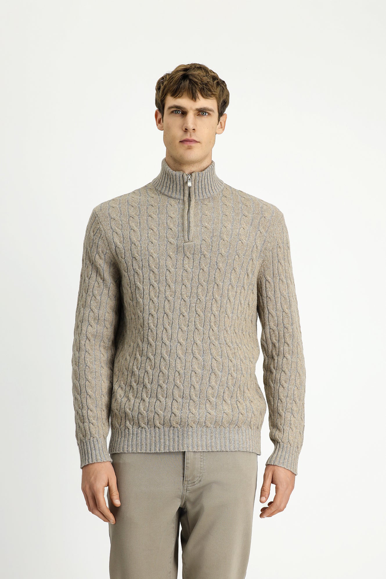 Orta Vizon Yarım Balıkçı Yaka Regular Fit Desenli Yünlü Triko Kazak