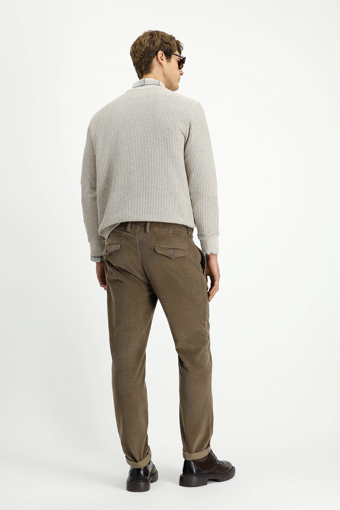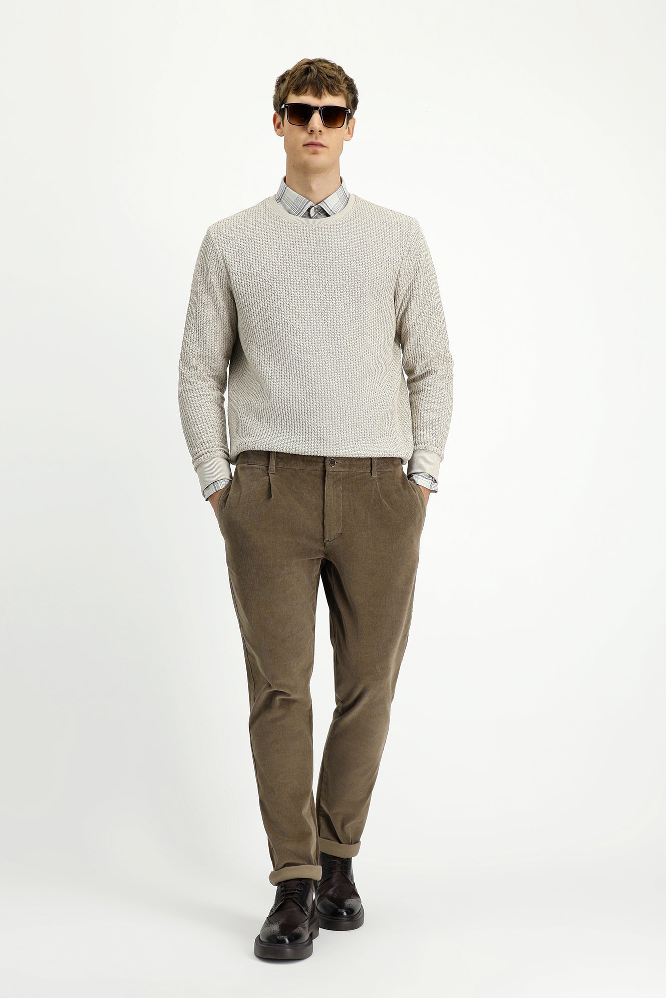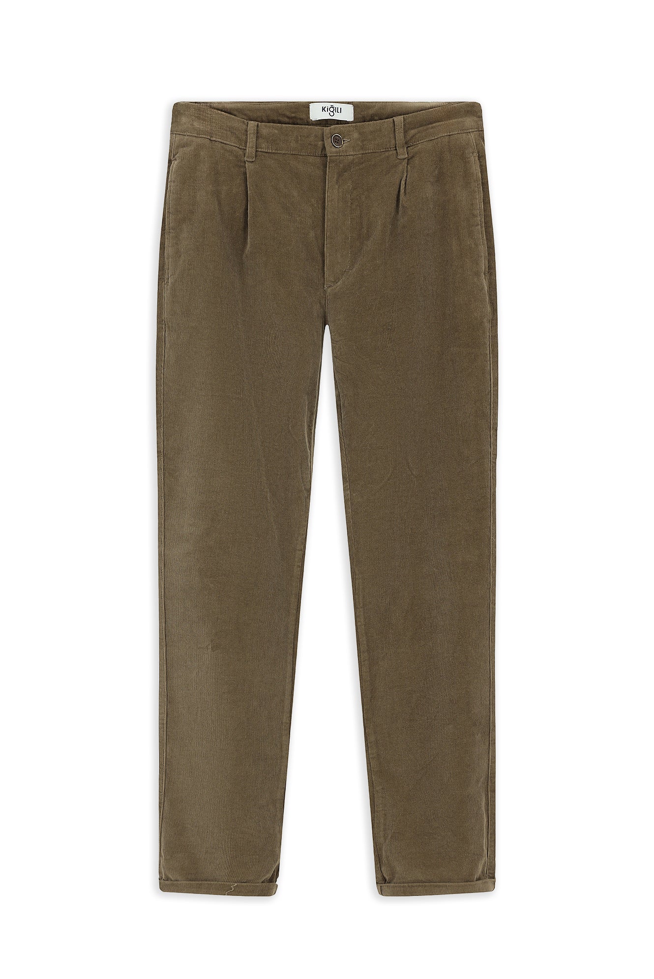 Orta Vizon Regular Fit Likralı Pileli Kadife Pantolon