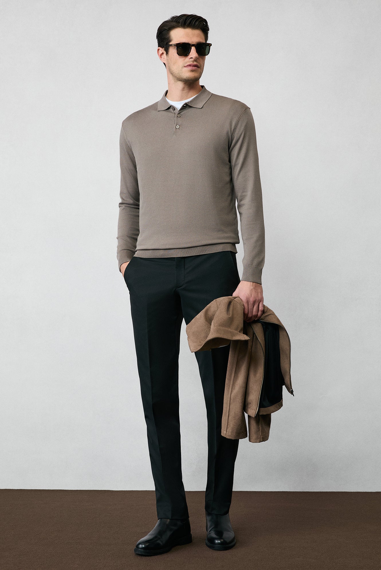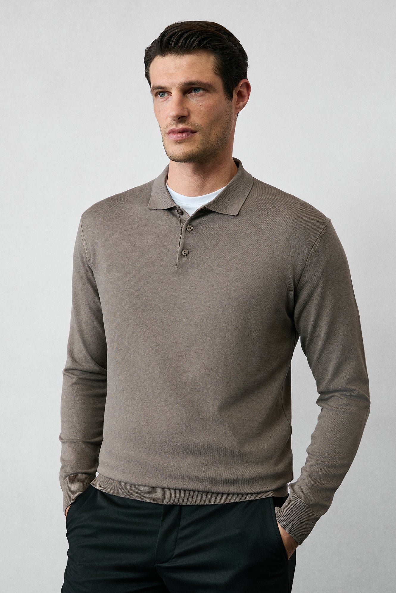 Orta Vizon Polo Yaka Regular Fit Düğmeli Triko Kazak