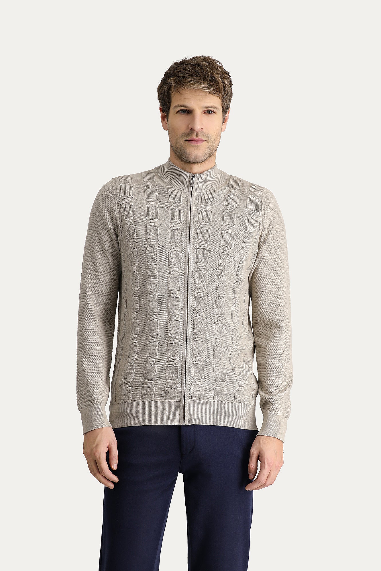 Orta Vizon Slim Fit Dar Kesim Yünlü Desenli Pamuklu Triko Hırka