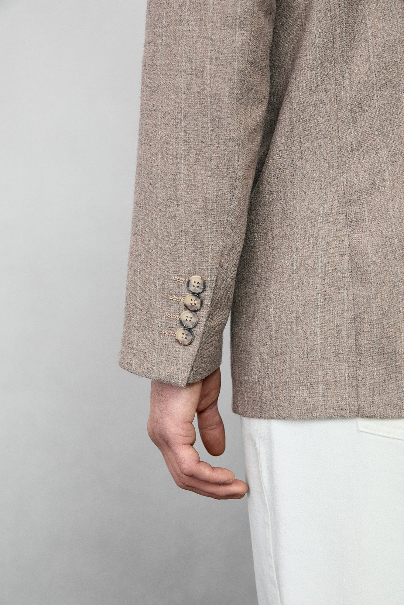 Orta Vizon Verona Kalıp Sivri Yaka Çizgili Yünlü Kruvaze Ceket