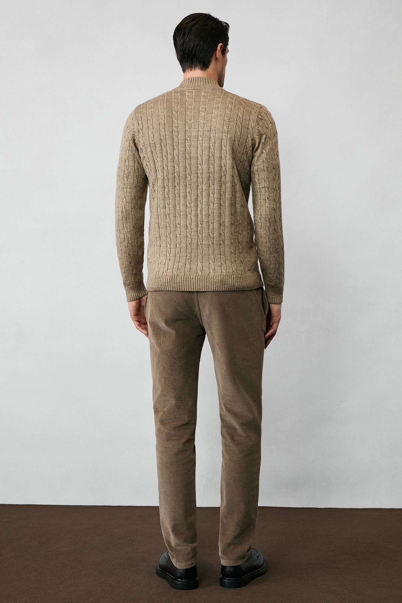 Orta Vizon Yarım Balıkçı Yaka Fermuarlı Regular Fit Desenli Triko Kazak