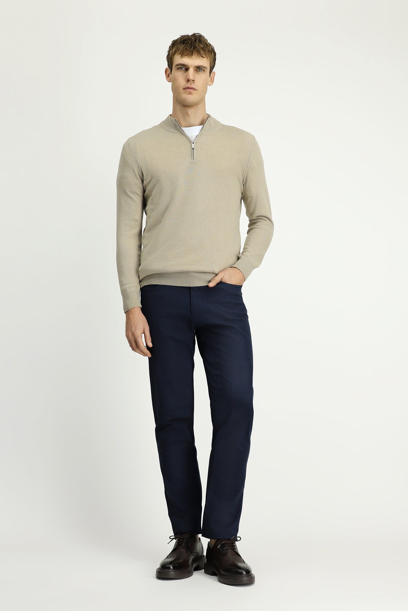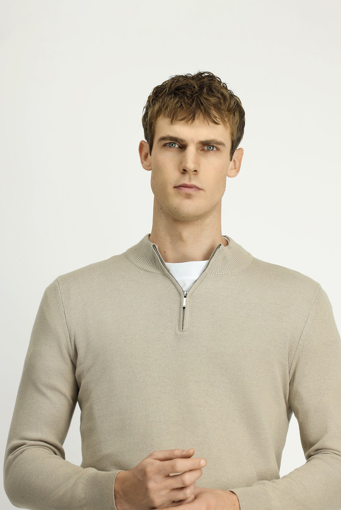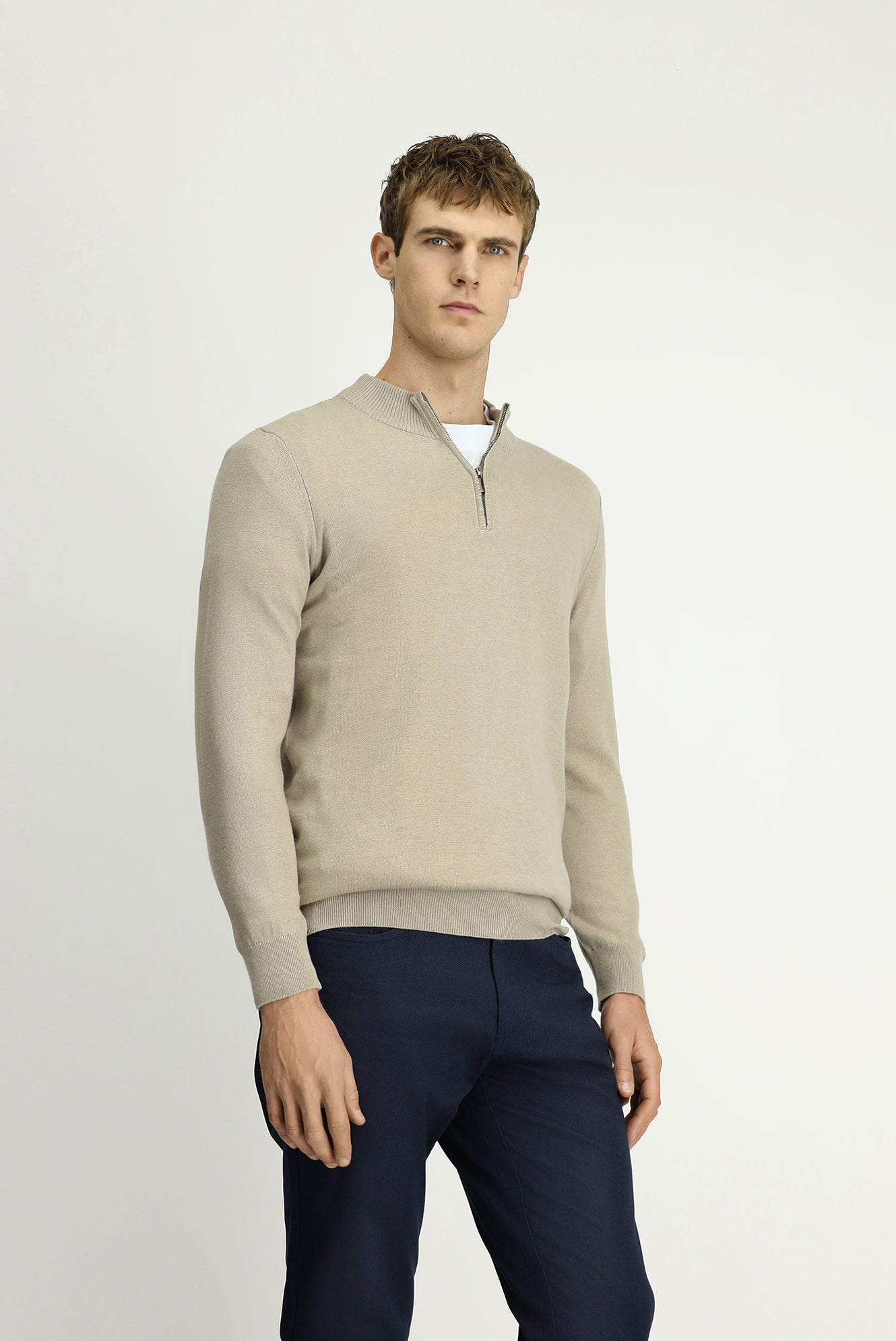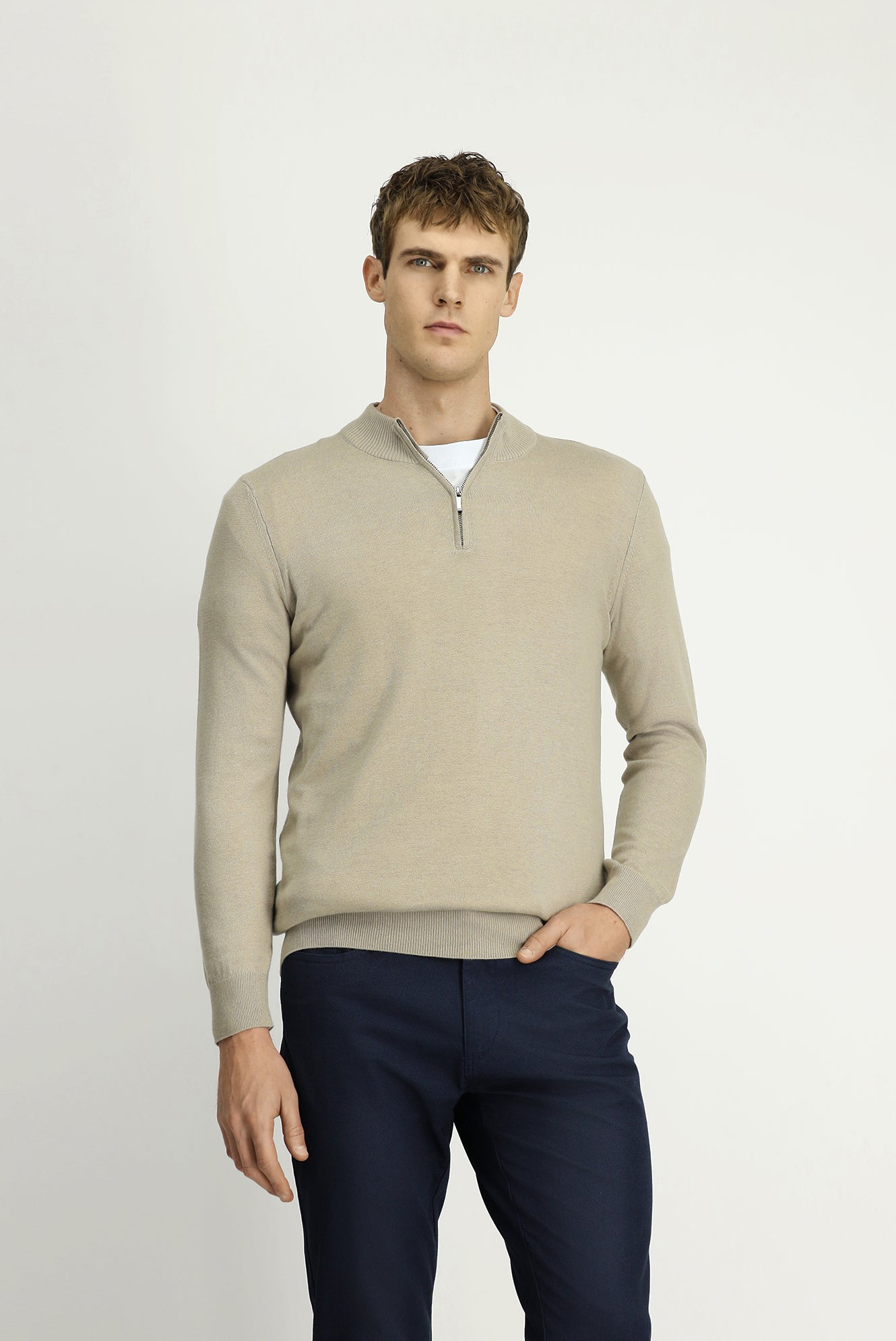 Orta Vizon Yarım Balıkçı Yaka Regular Fit Fermuarlı Kaşmirli Triko Kazak