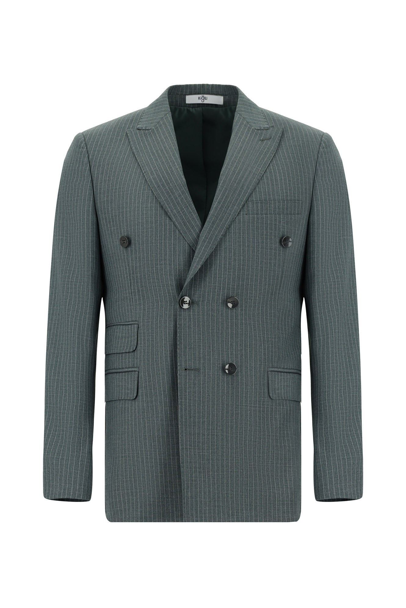 Petrol Yeşili Regular Fit Çizgili Kruvaze Takım Elbise