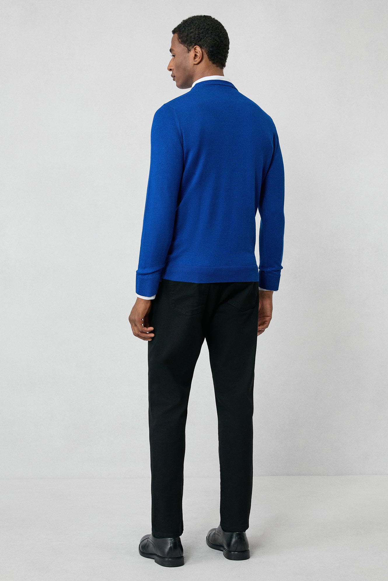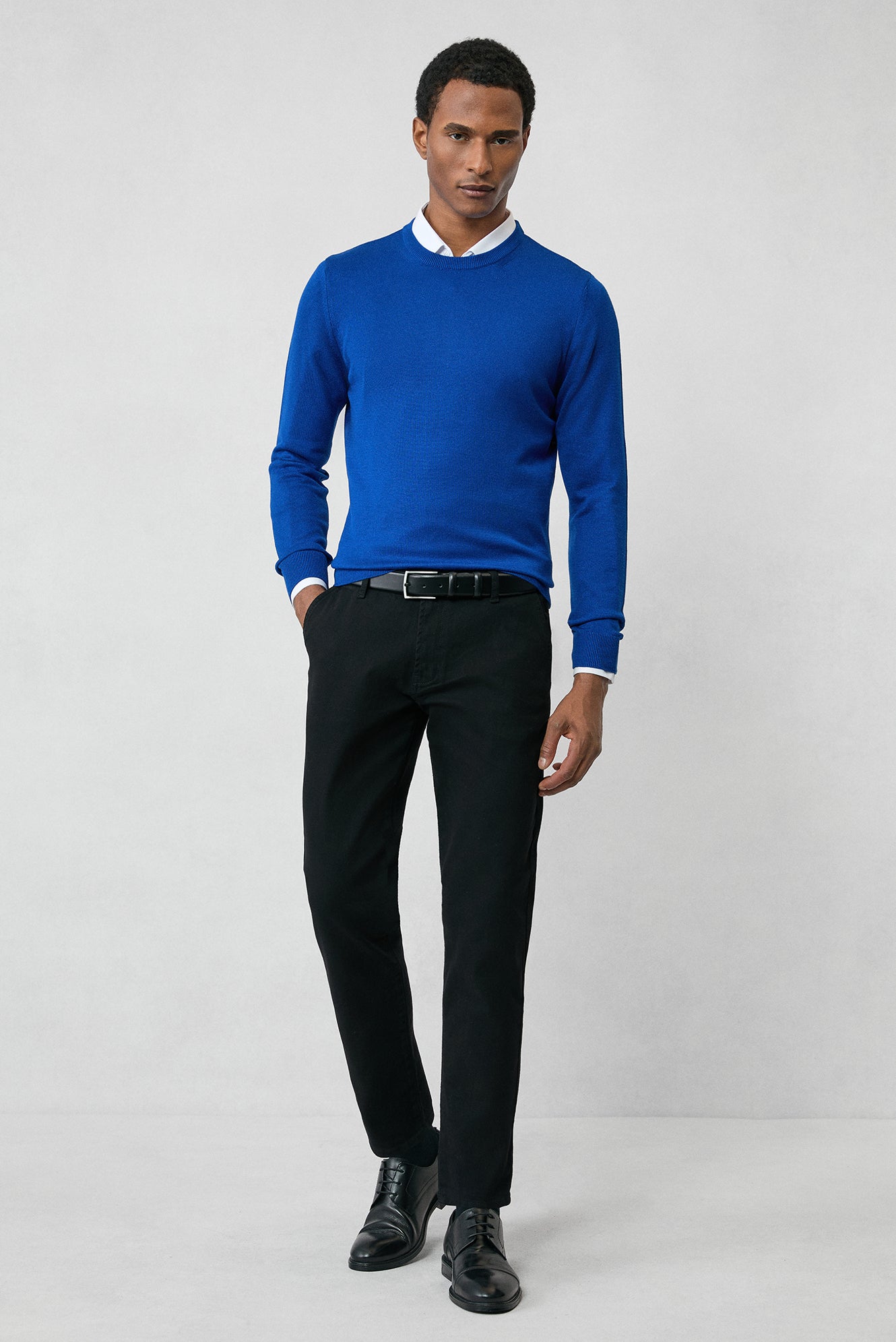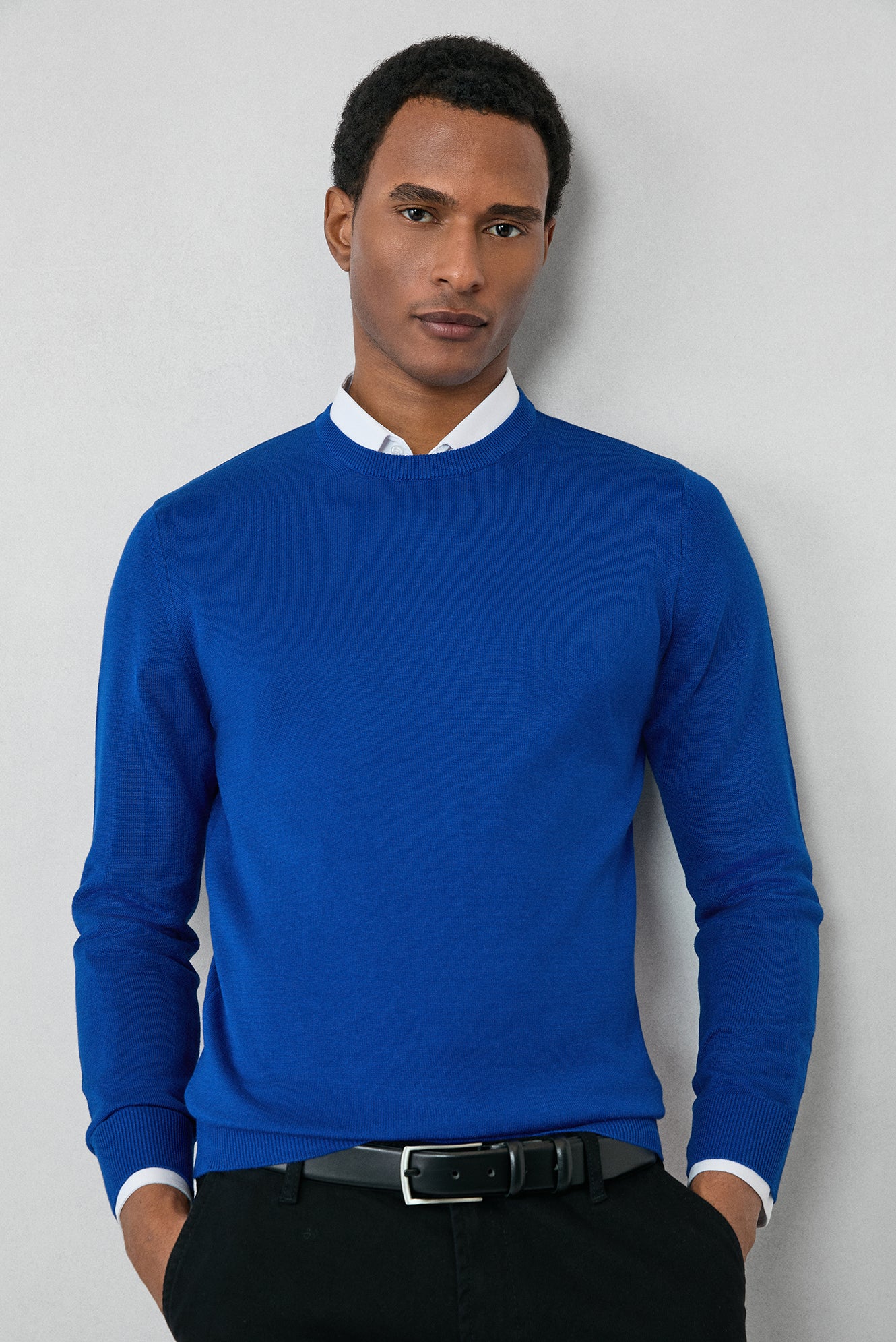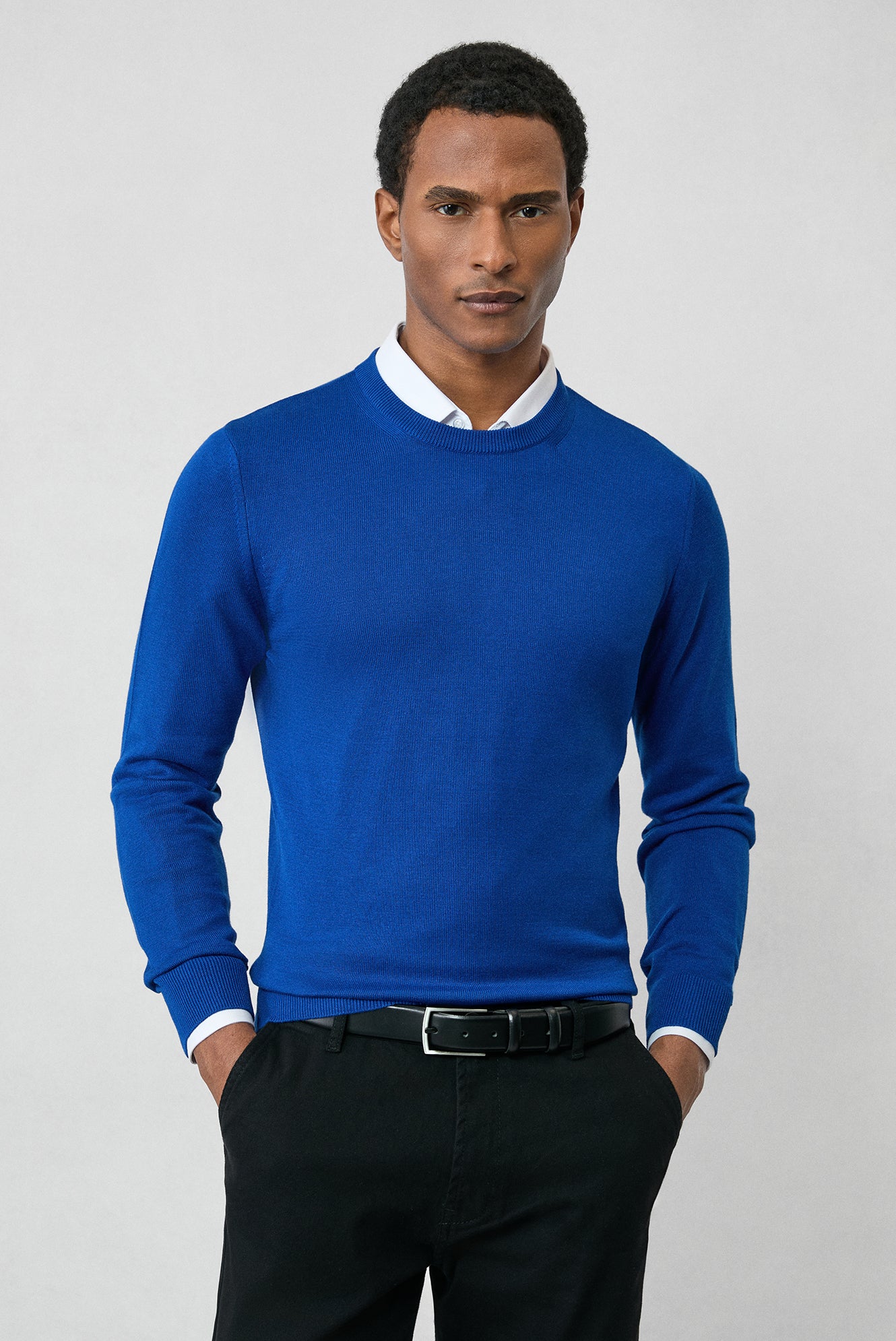 Saks Mavi Bisiklet Yaka Regular Fit Pamuklu Triko Kazak