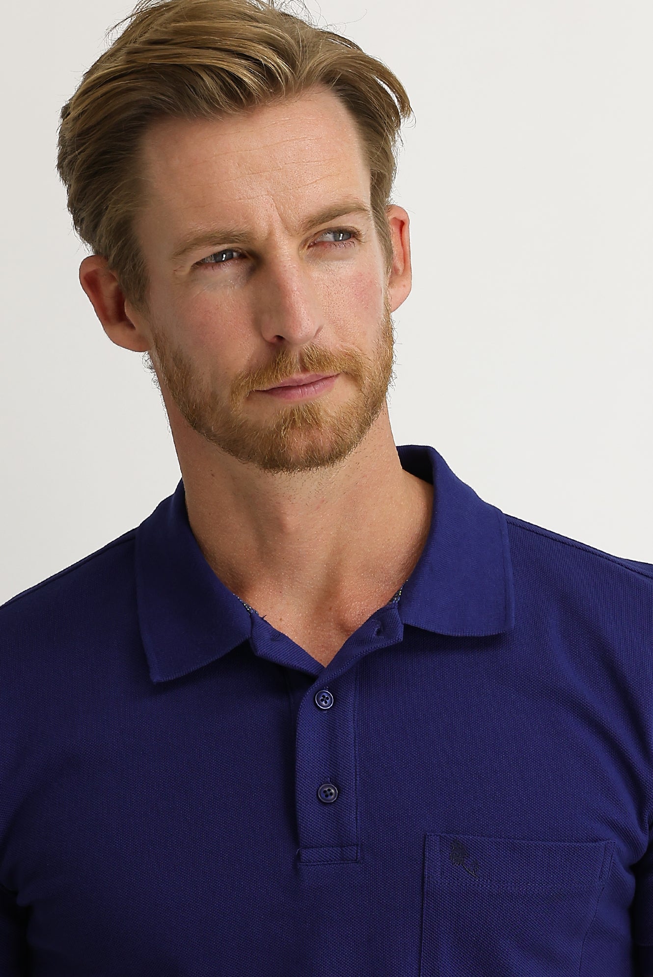 Saks Mavi Cepli Polo Yaka Regular Fit Nakışlı Pamuk Tişört
