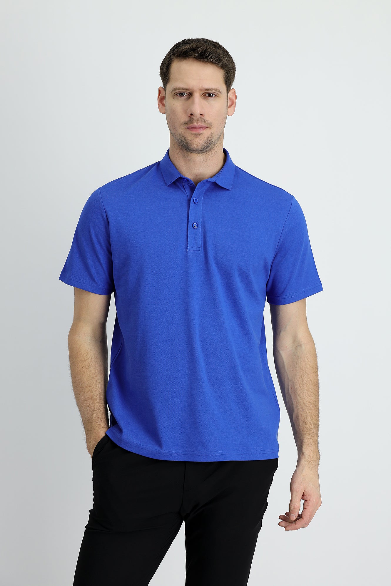 Saks Mavi Polo Yaka Regular Fit Pamuk Tişört