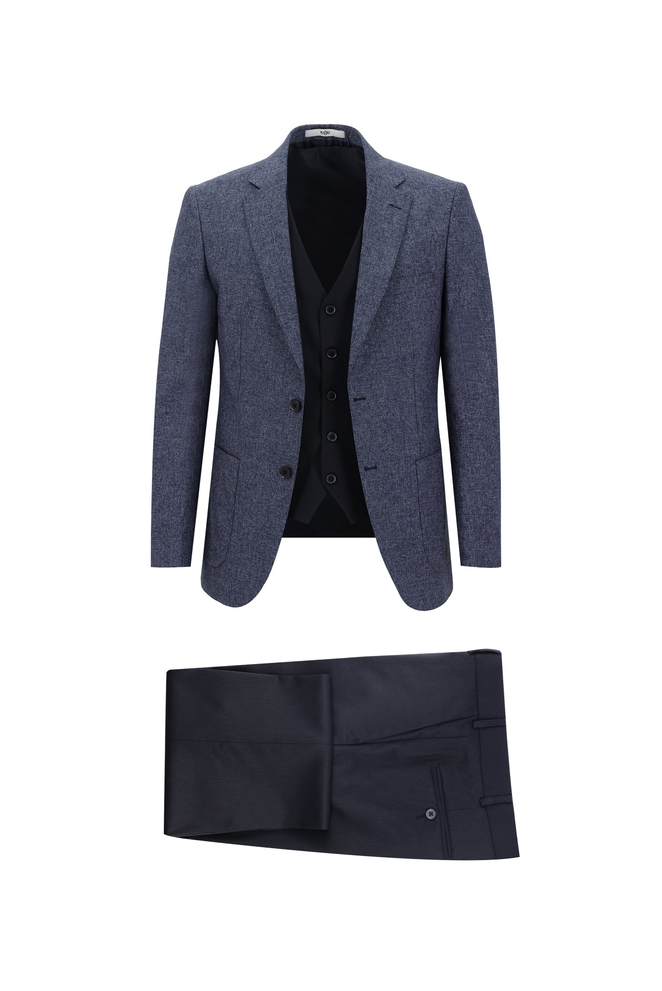 Saks Mavi Slim Fit Dar Kesim Kombinli Yelekli Takım Elbise