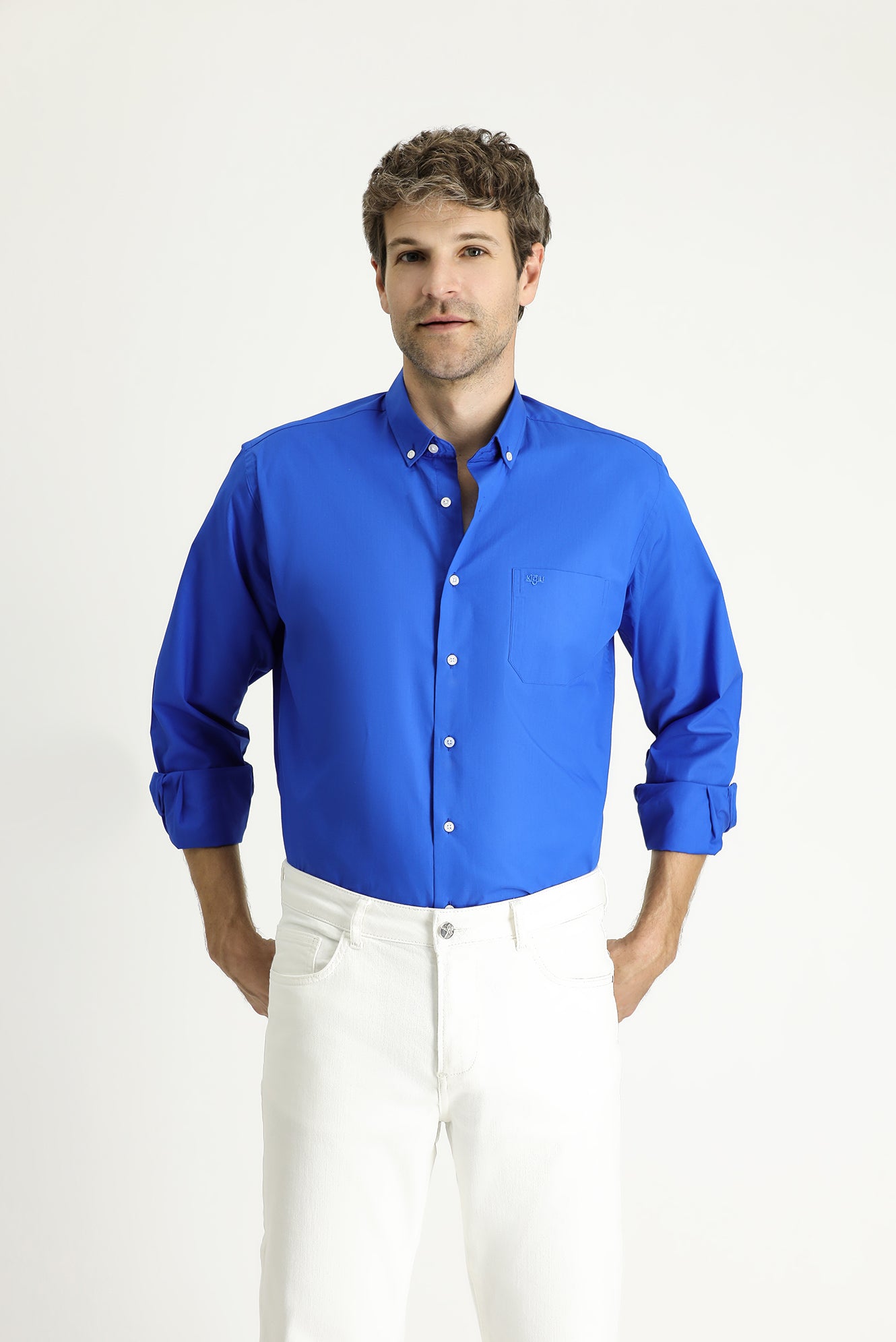 Saks Mavi Uzun Kol Regular Fit Pamuklu Gömlek