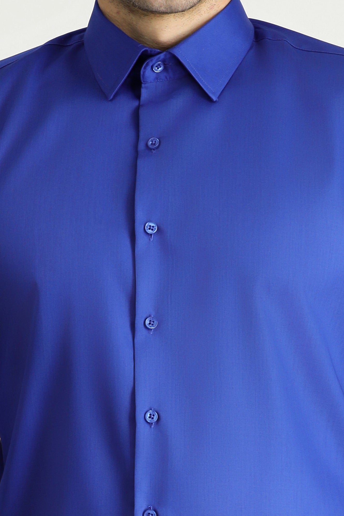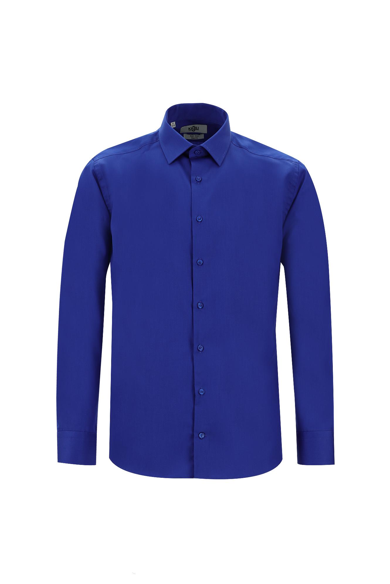 Saks Mavi Uzun Kol Slim Fit Dar Kesim Klasik Non Iron Pamuklu Gömlek