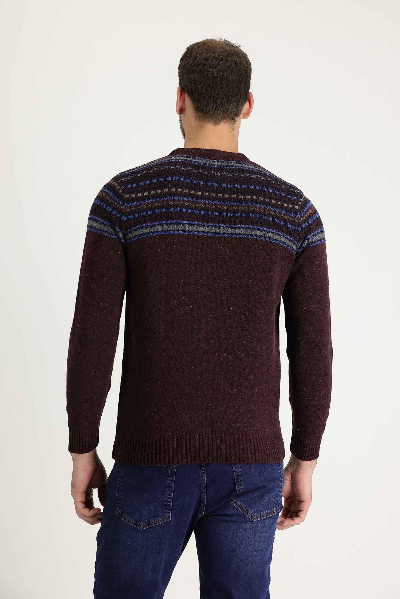 Şarap Bordo Bisiklet Yaka Slim Fit Dar Kesim Yünlü Desenli Triko Kazak