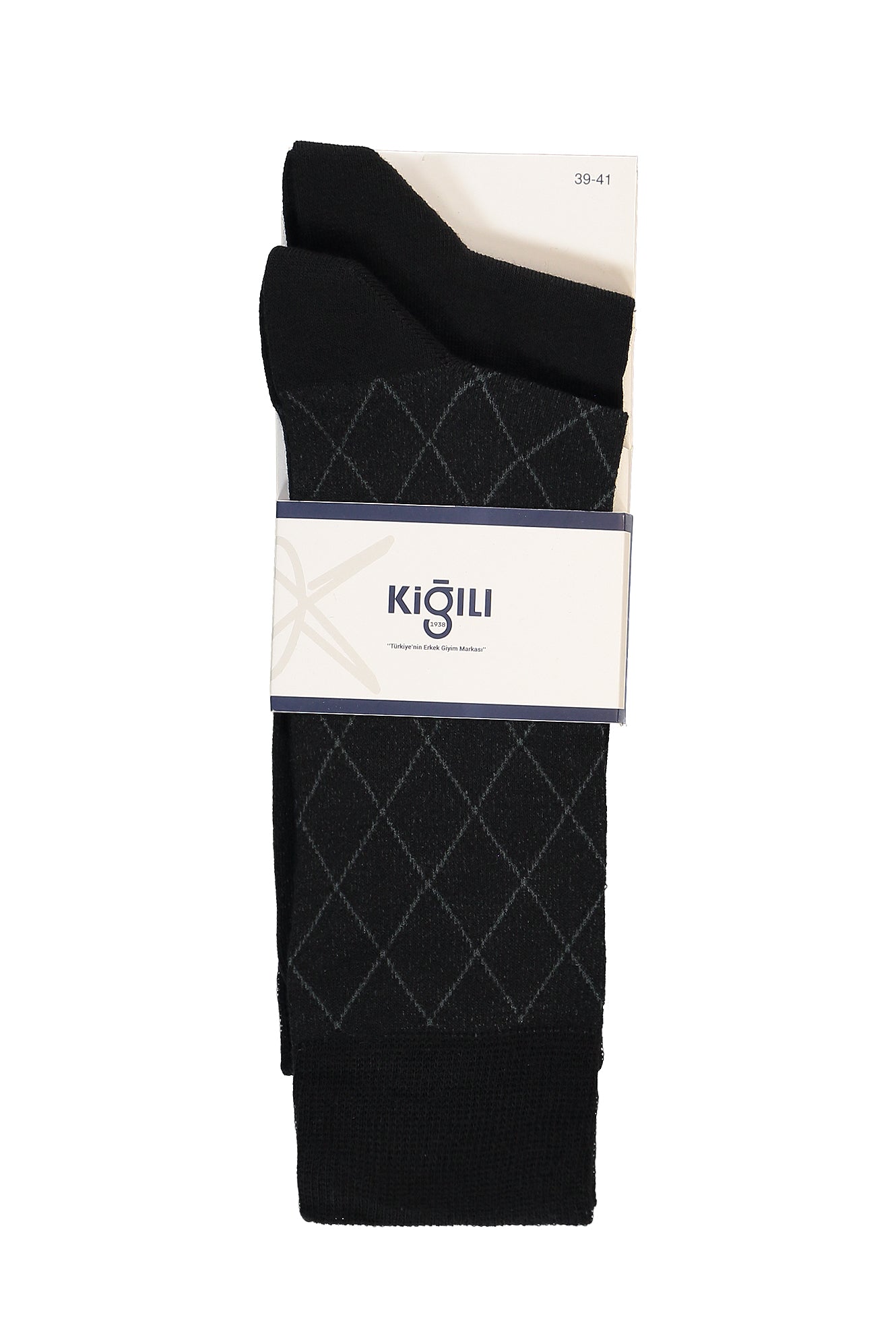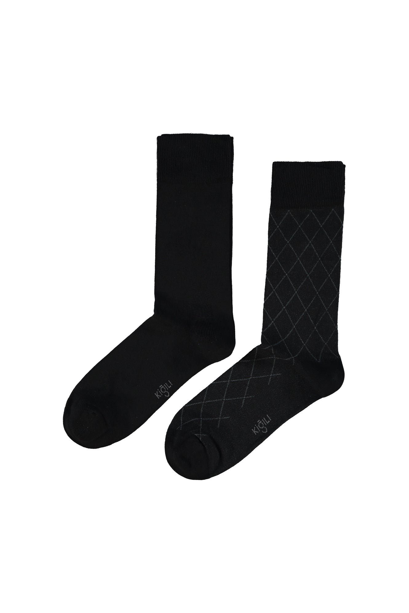 Siyah 2'li Pamuklu Likralı Esnek Desenli Çorap Seti
