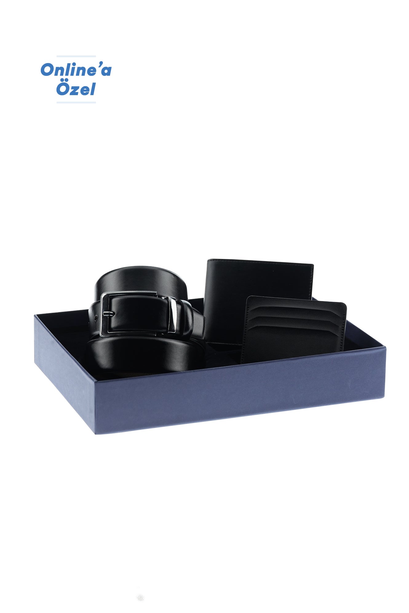 Siyah Desenli 3'lü Kemer & Cüzdan & Kartlık Hediye Kutulu Set