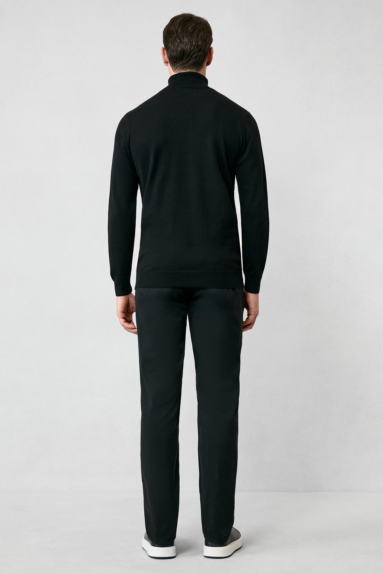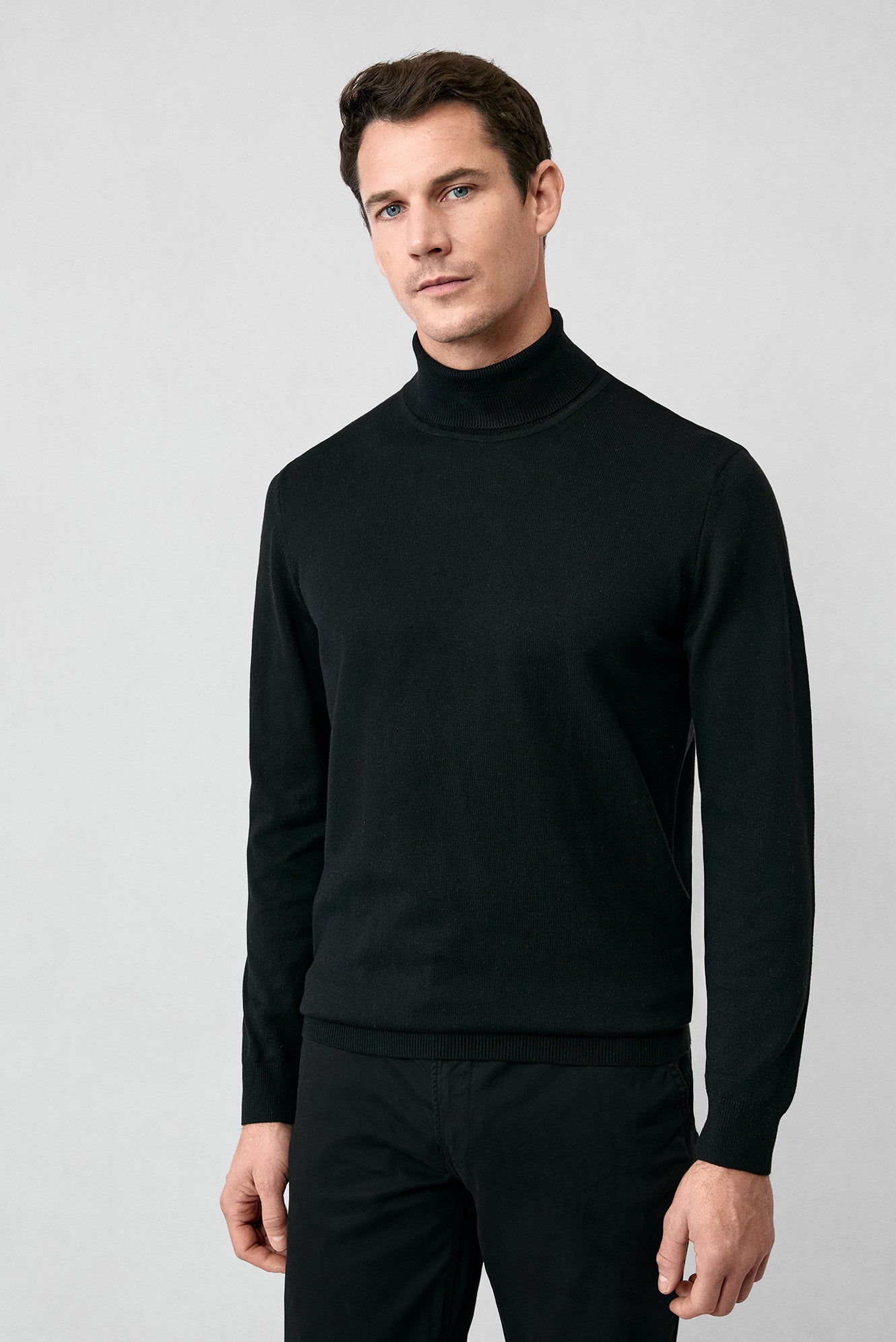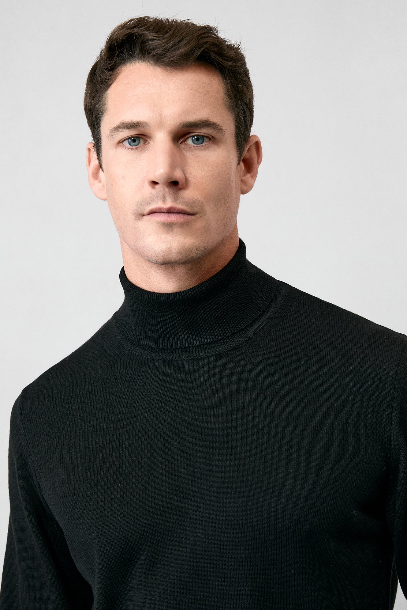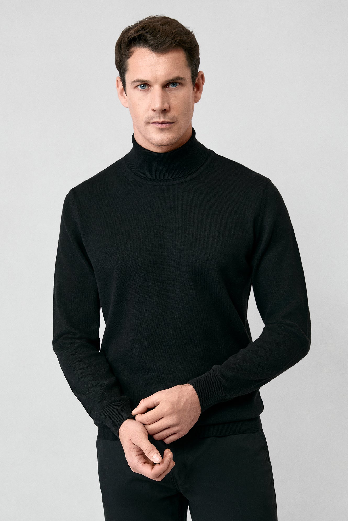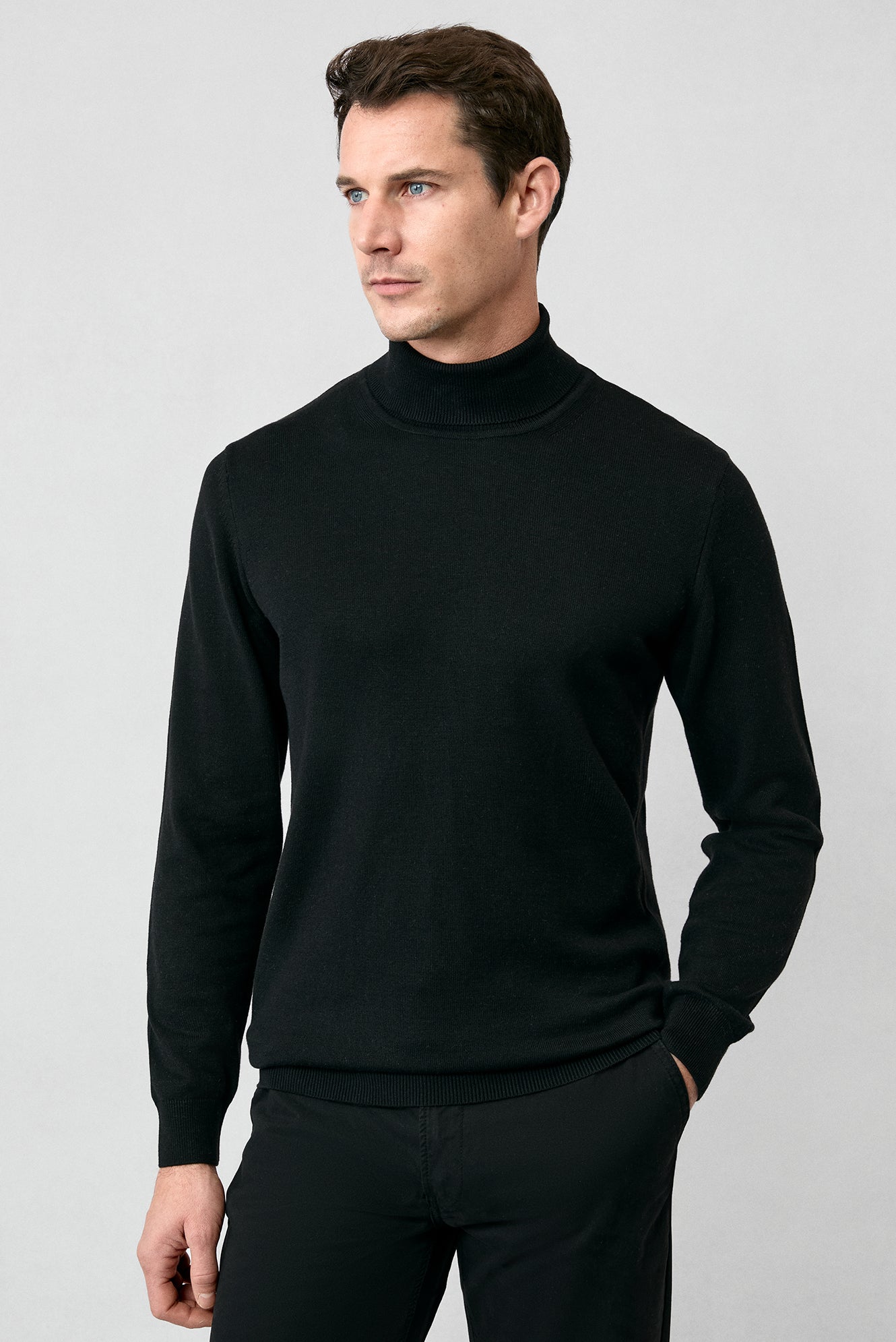 Siyah Balıkçı Yaka Regular Fit Pamuklu Örme Triko Kazak
