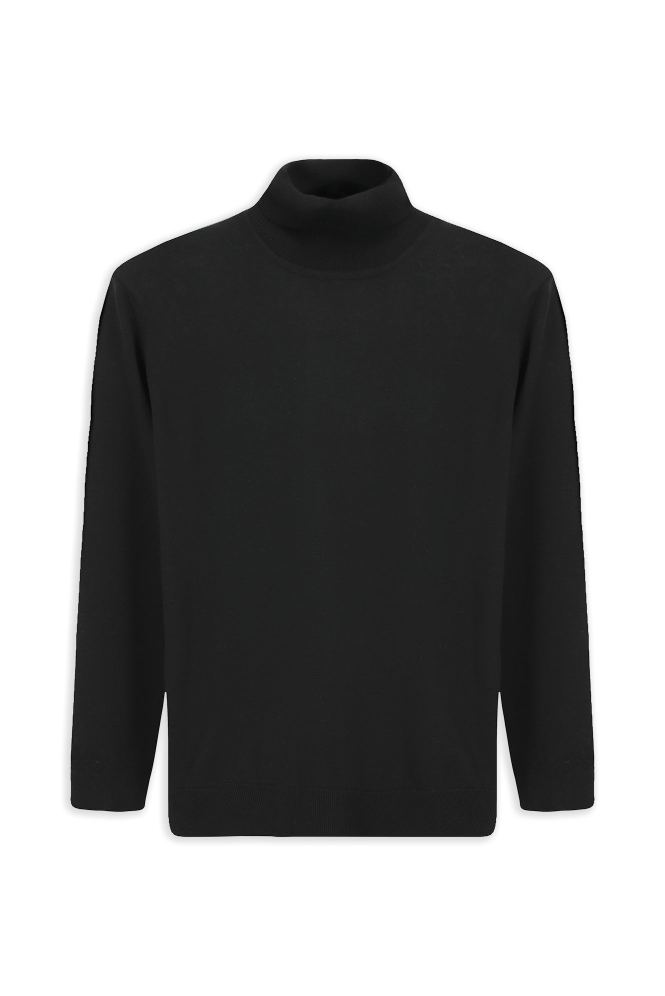 Siyah Balıkçı Yaka Regular Fit Pamuklu Örme Triko Kazak
