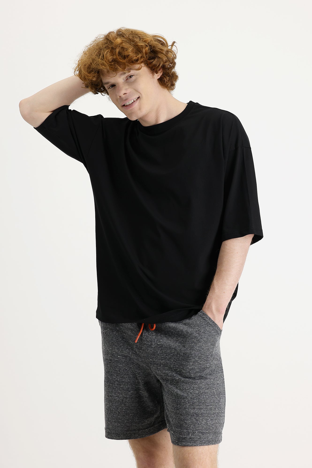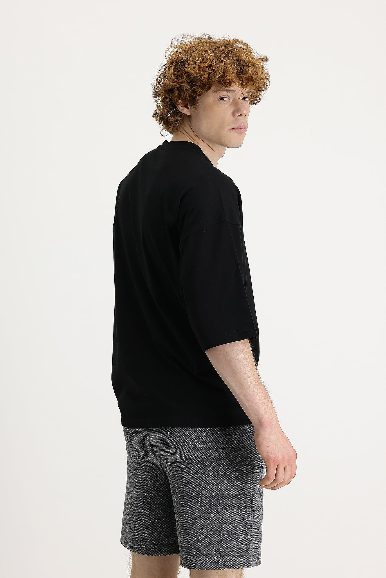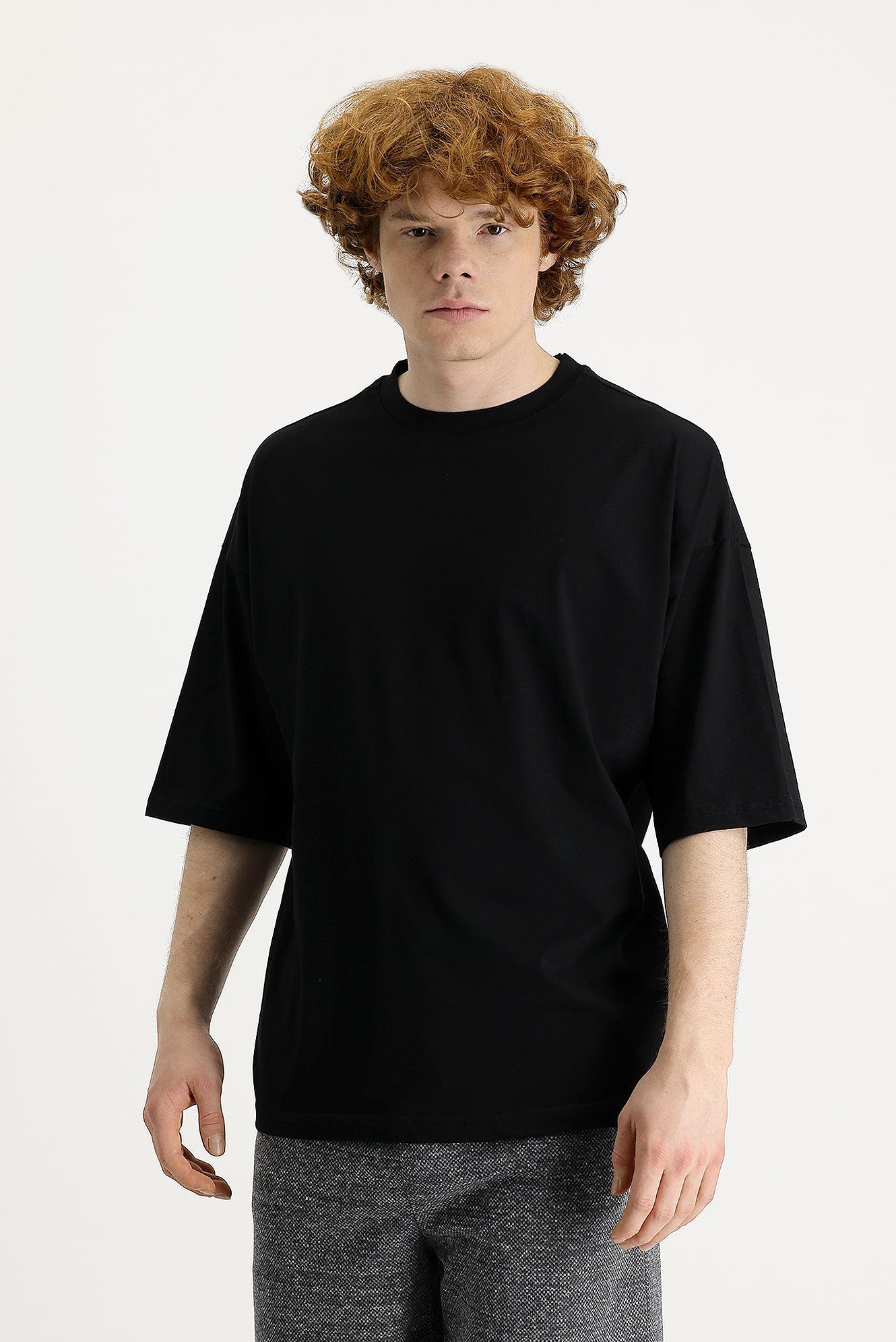 Siyah Bisiklet Yaka Oversize Süprem Pamuk Tişört