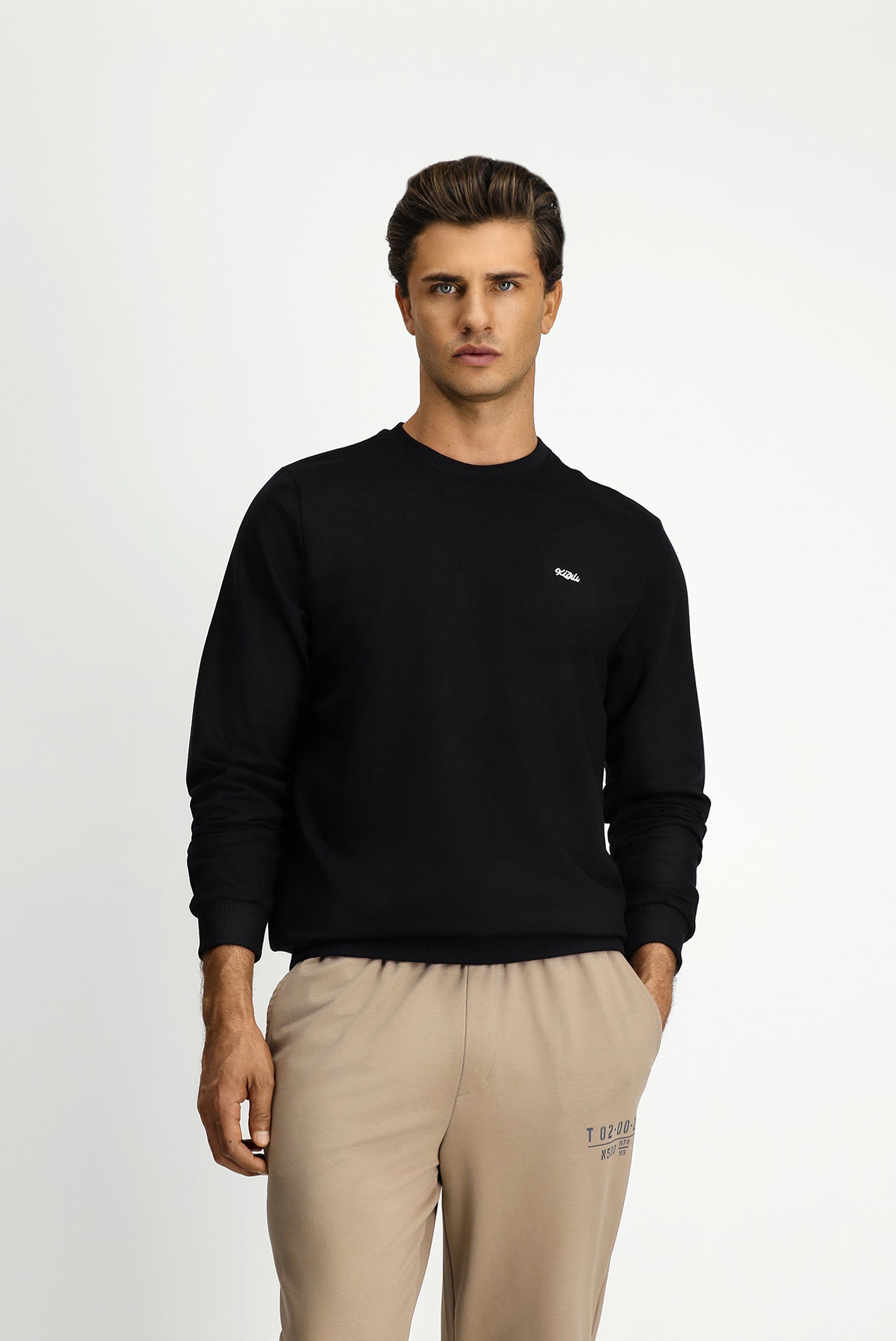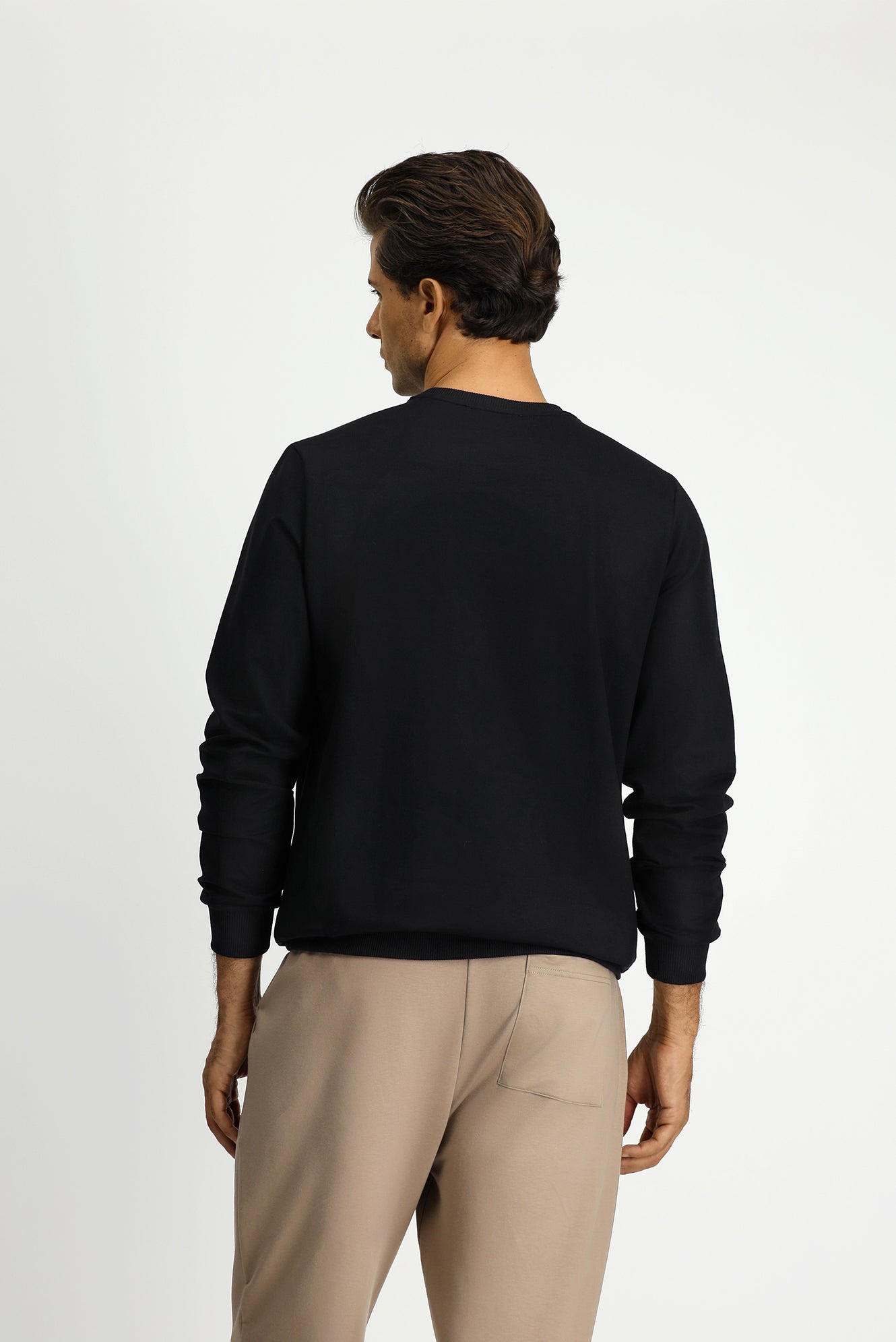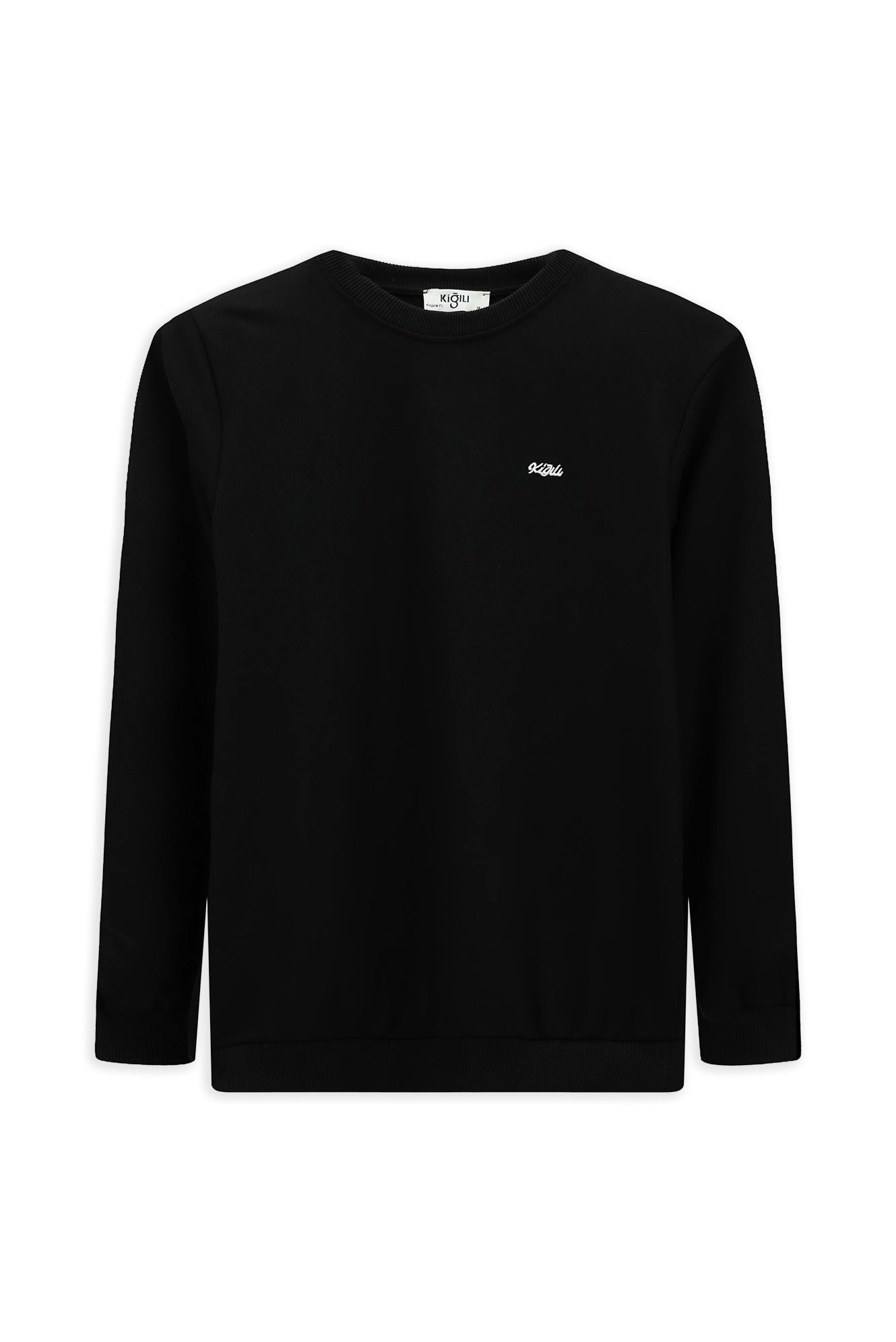 Siyah Bisiklet Yaka Regular Fit Nakışlı Basic Sweatshirt