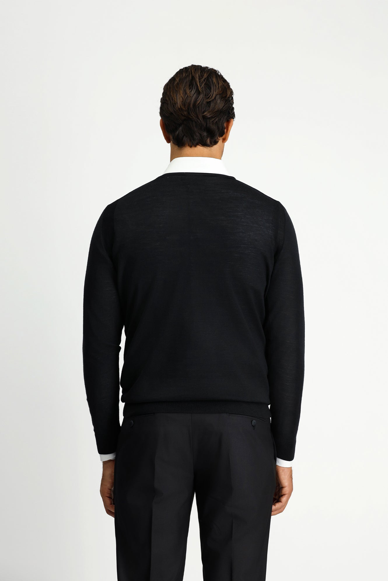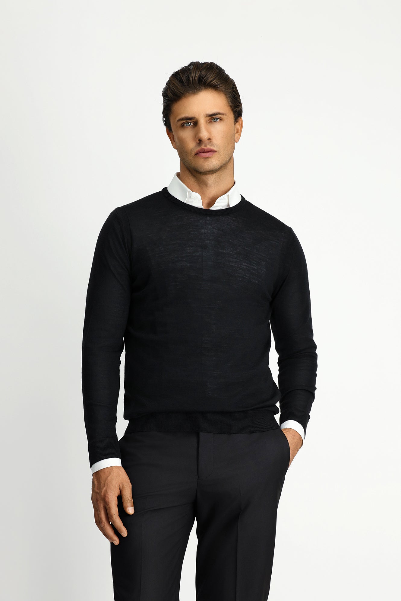 Siyah Bisiklet Yaka Regular Fit Yünlü Triko Kazak