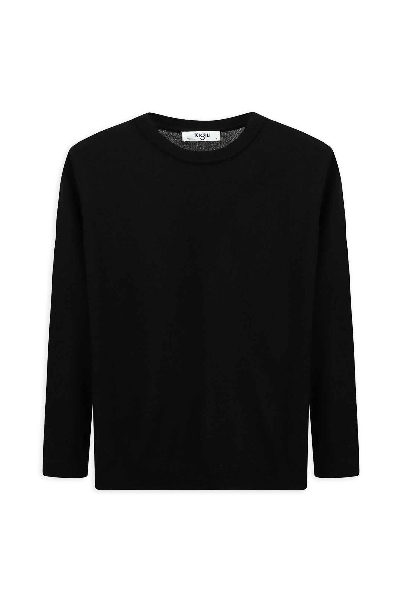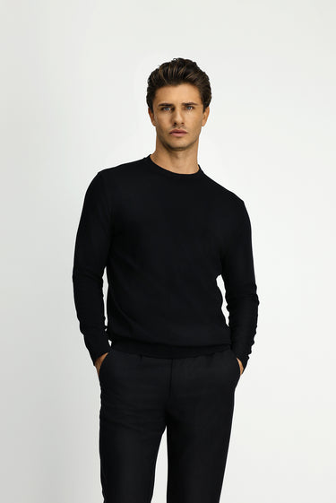 Siyah Bisiklet Yaka Regular Fit Triko Kazak
