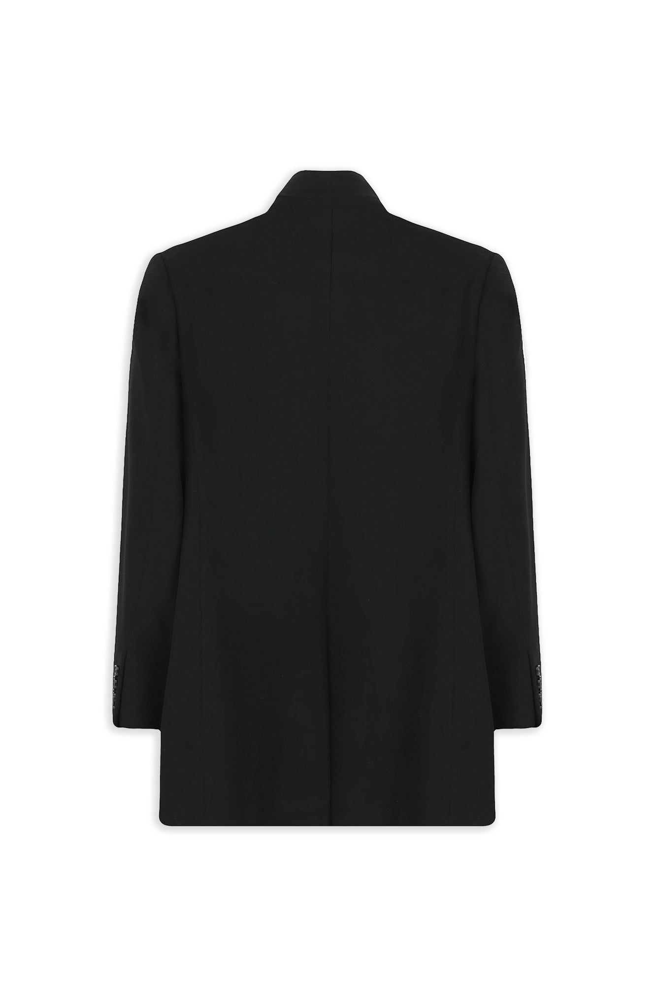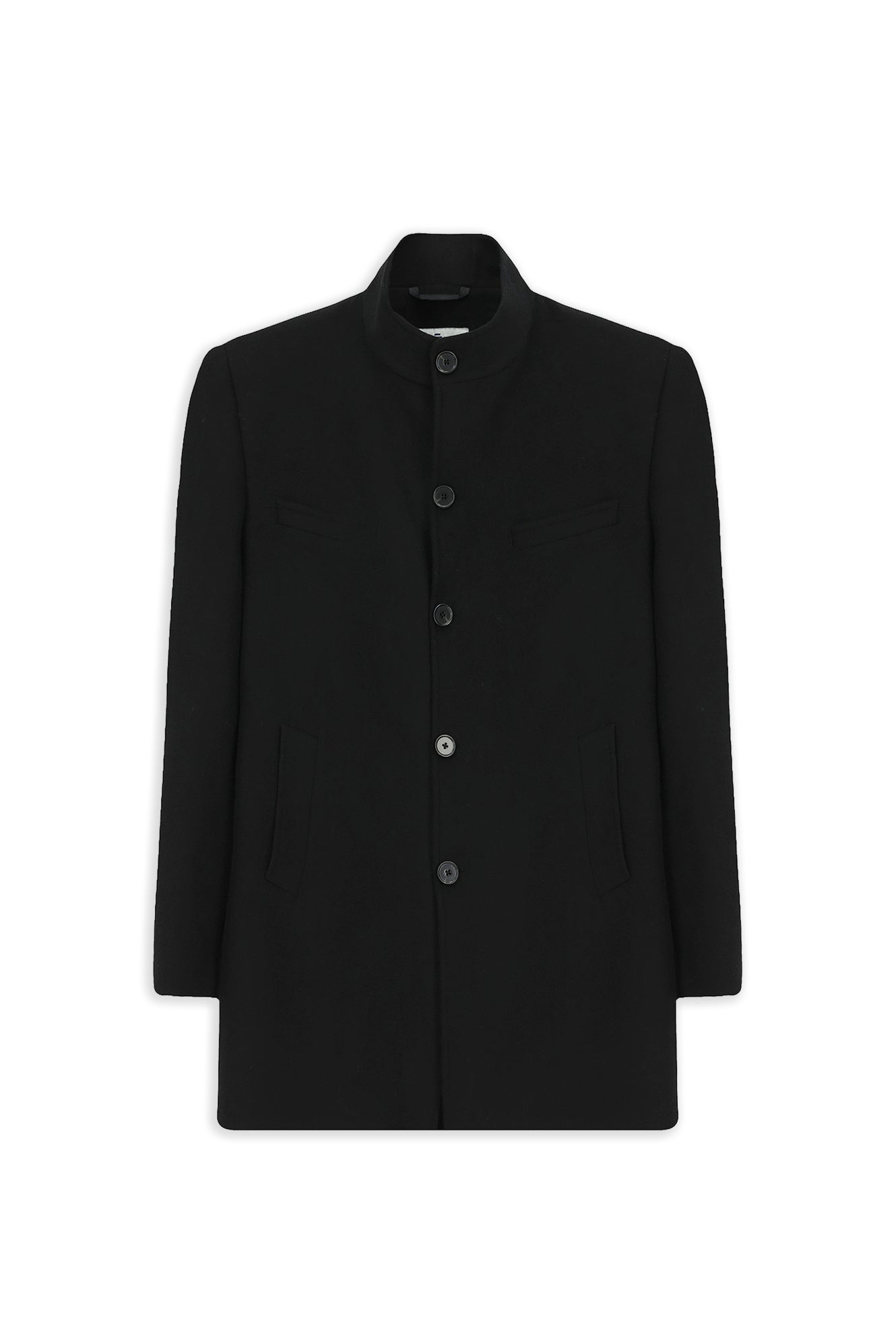 Siyah Slim Fit Dar Kesim Dik Yaka Cepli Yünlü Klasik Kaban