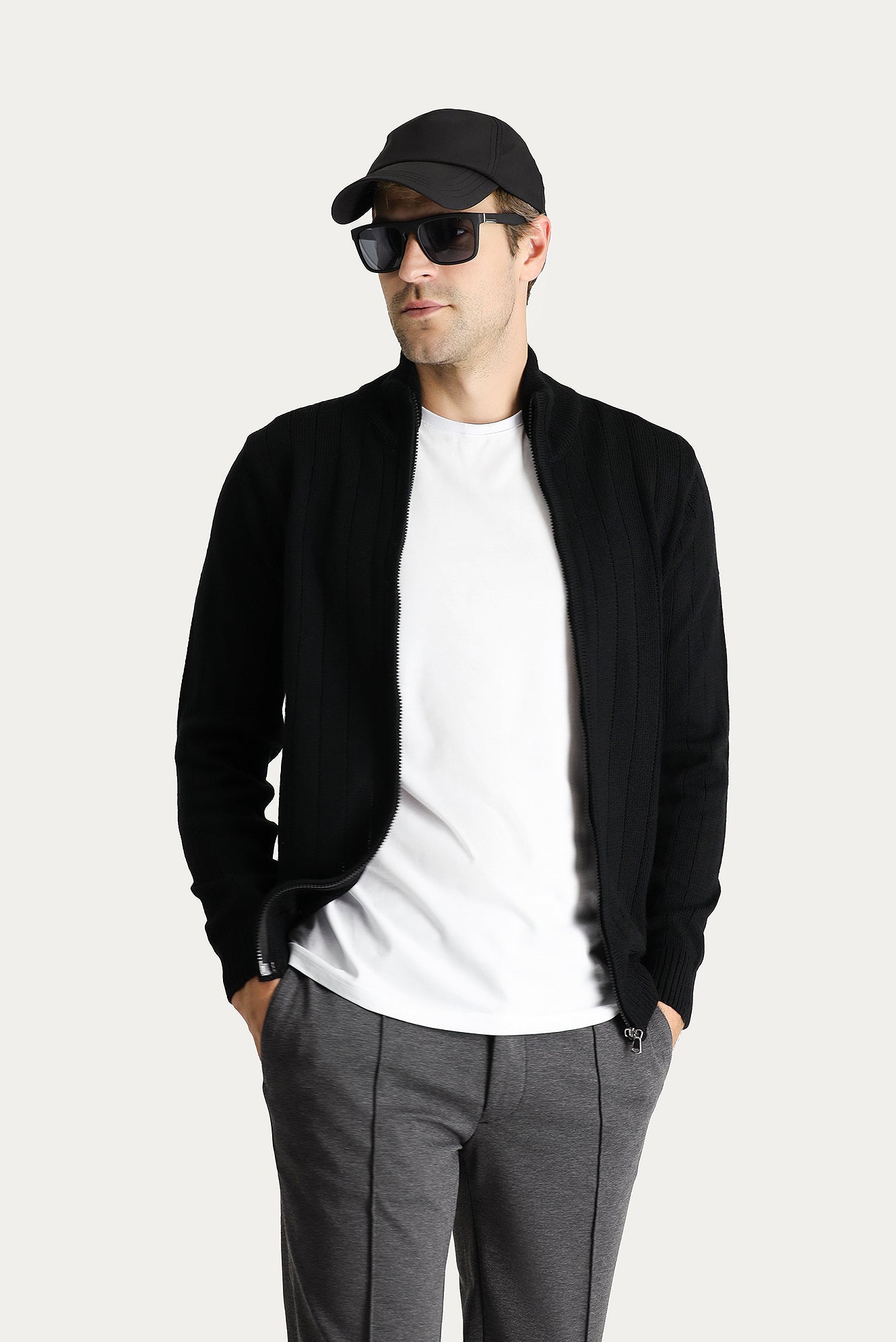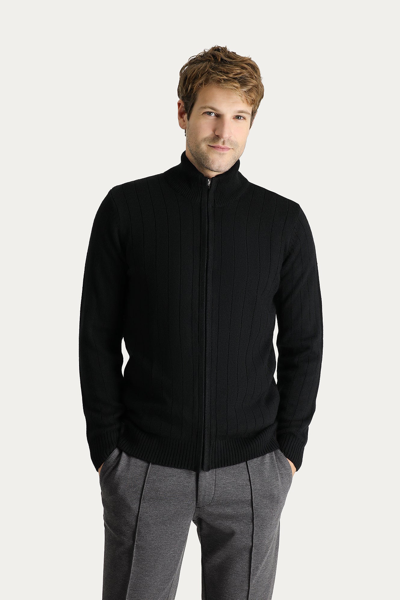 Siyah Fermuarlı Triko Hırka