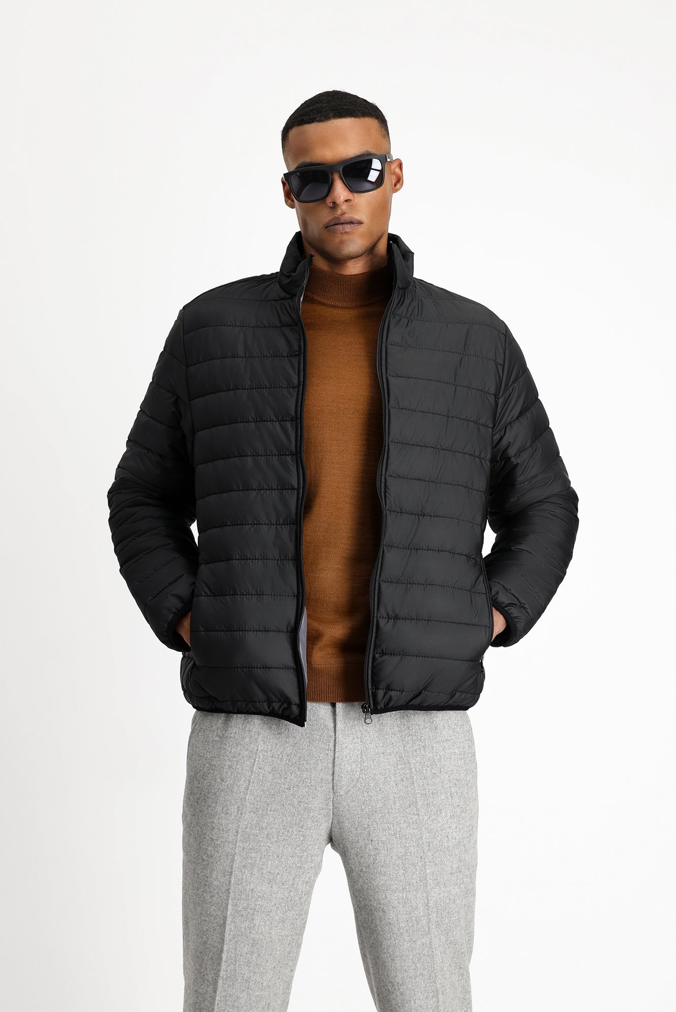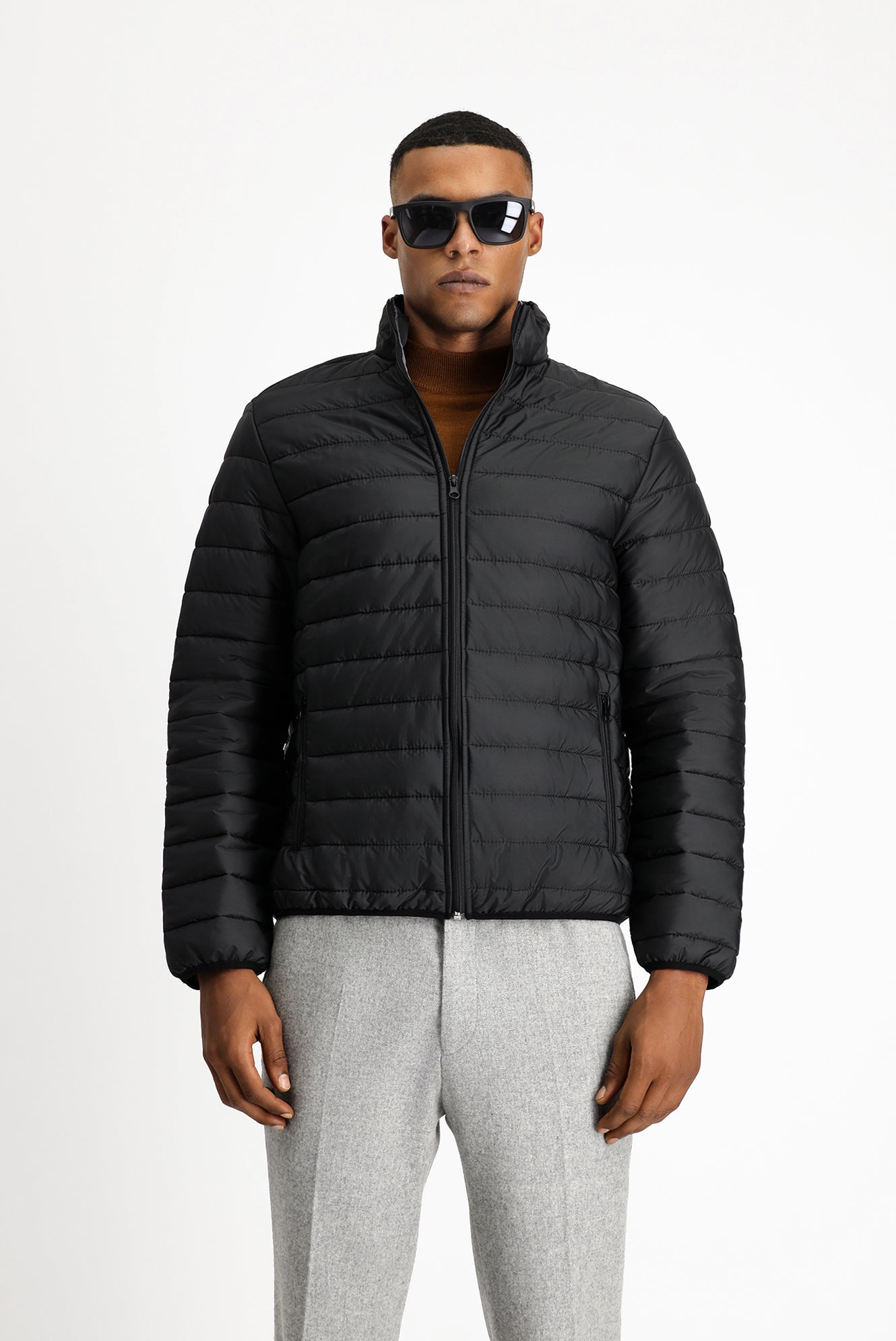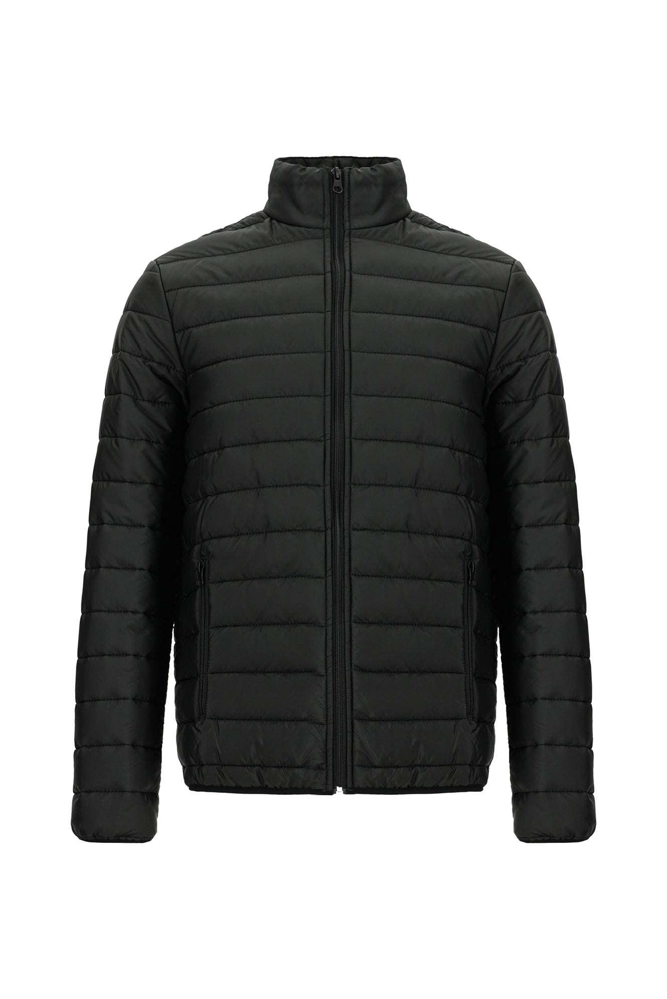 Siyah Dik Yaka Fermuarlı Cepli Rüzgara Dayanıklı Sıcak Tutan Kapitone Spor Mont