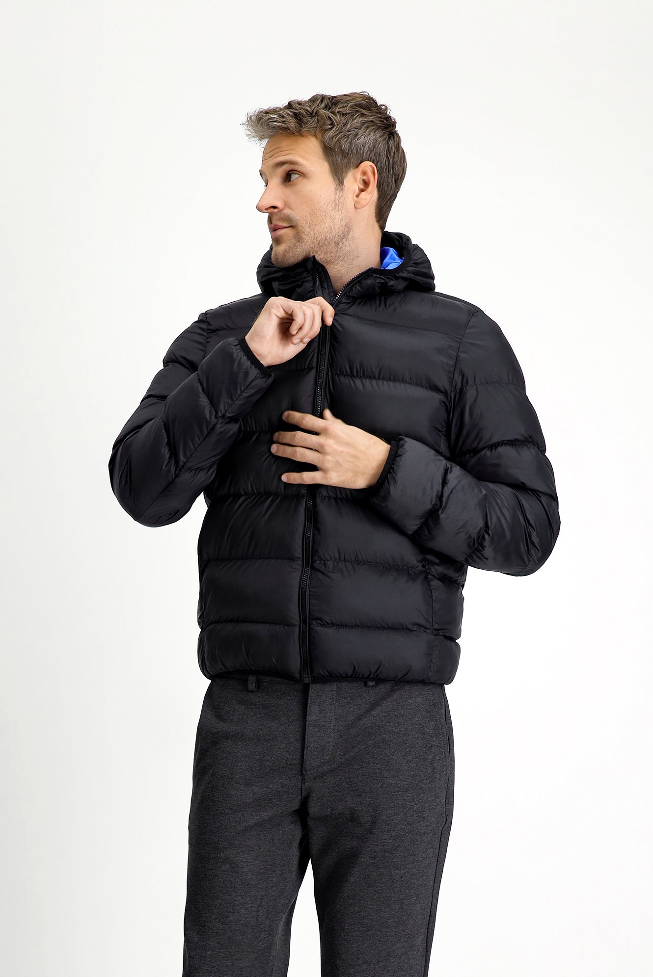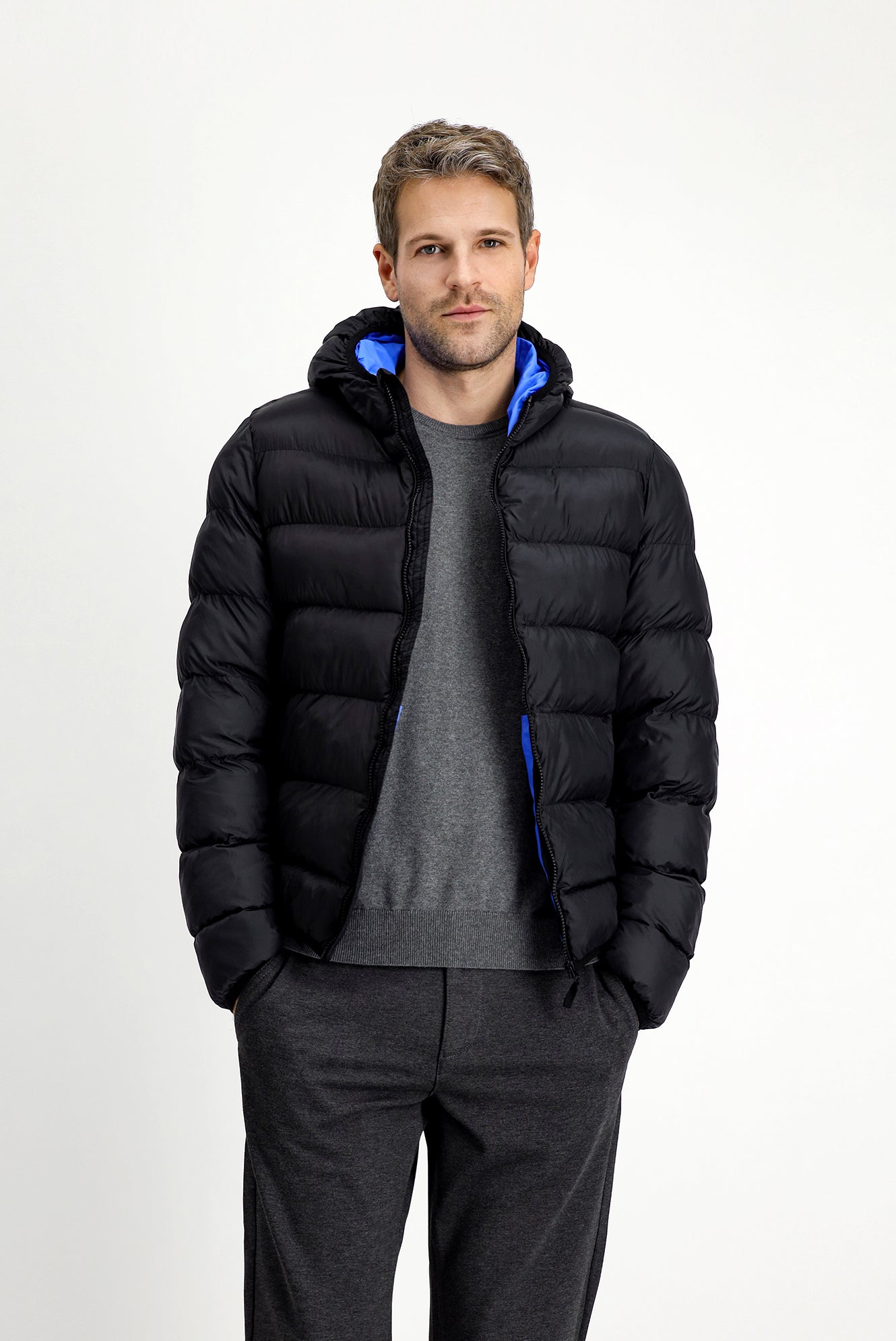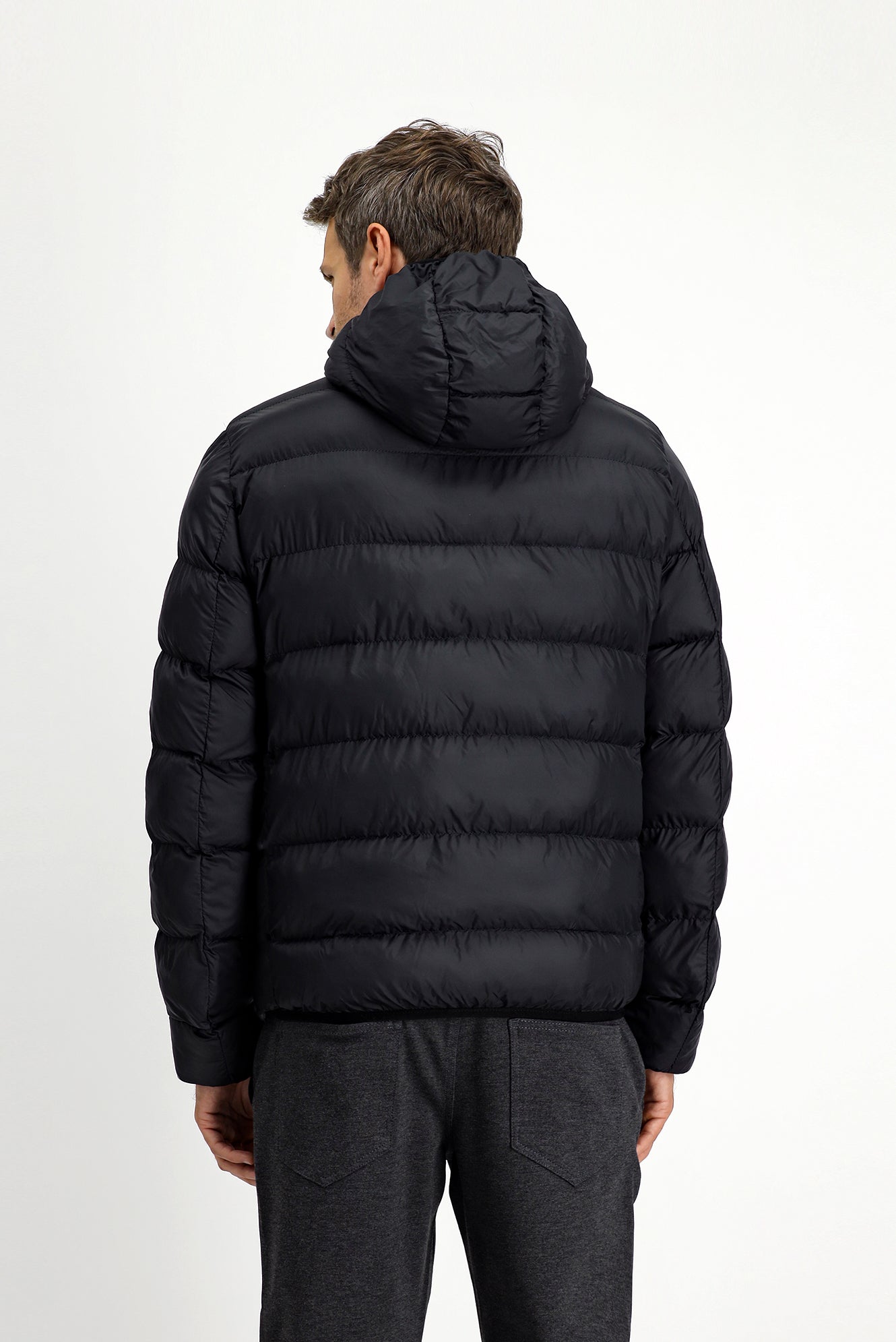 Siyah Kapüşonlu Çantalı Spor Şişme Mont