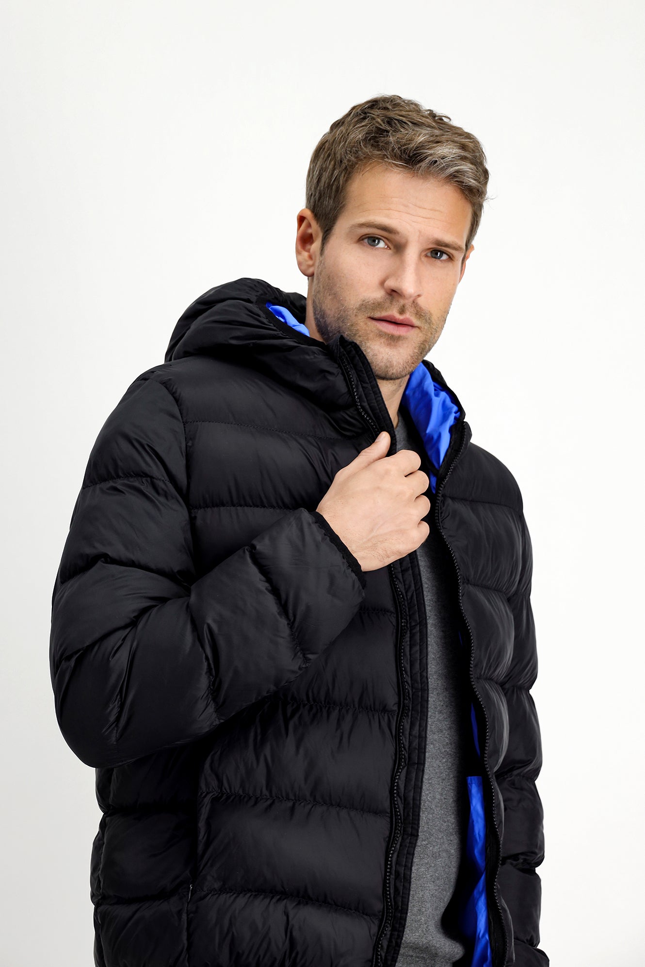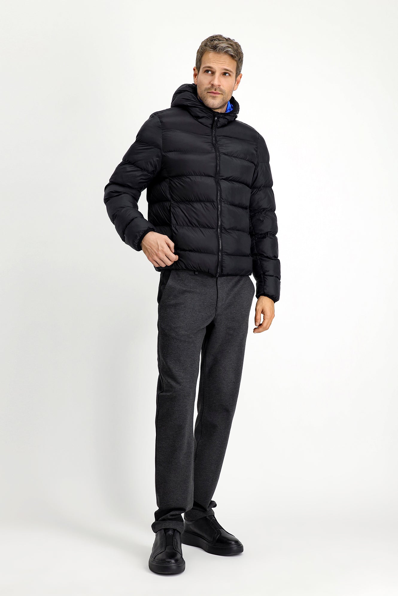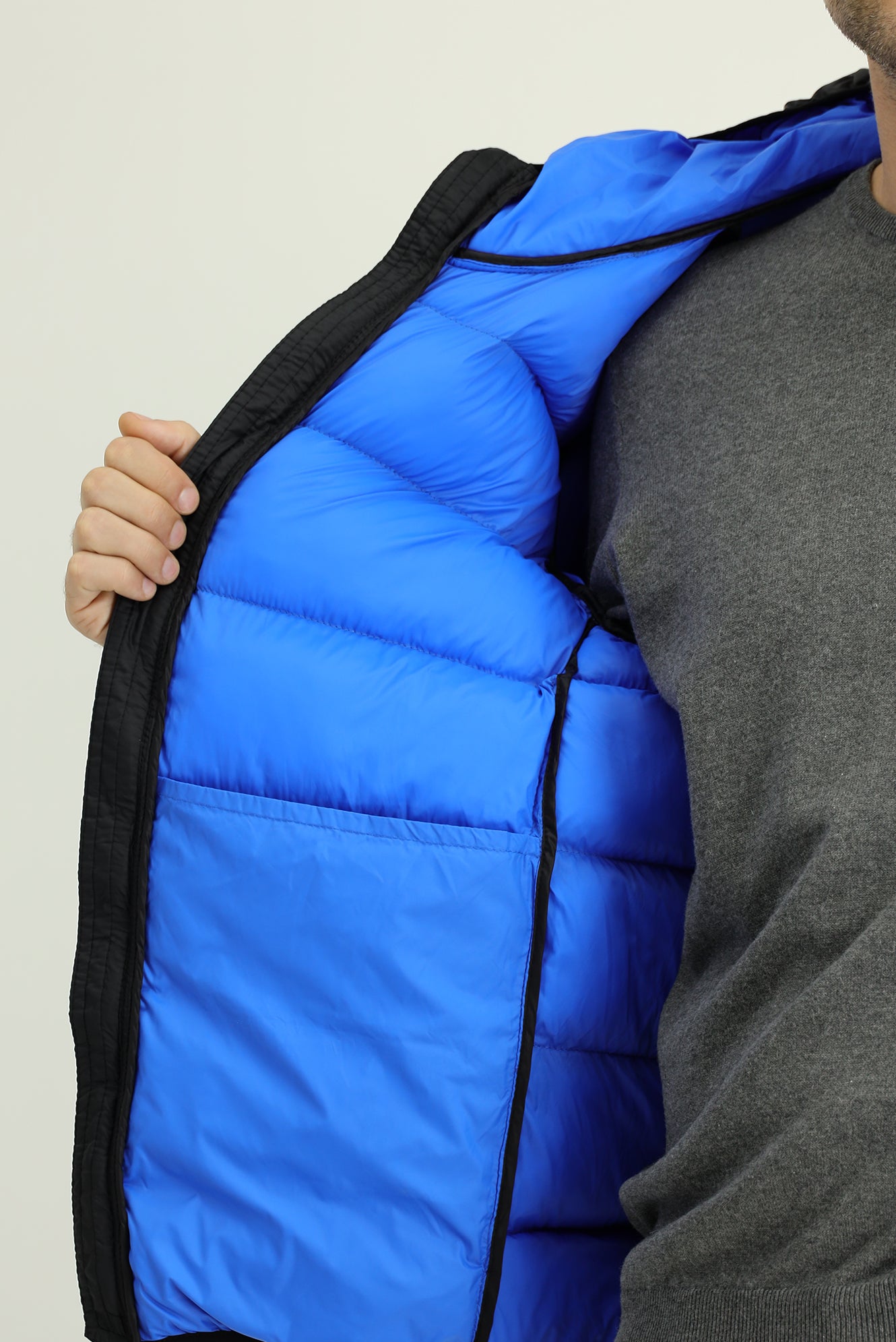 Siyah Kapüşonlu Çantalı Spor Şişme Mont