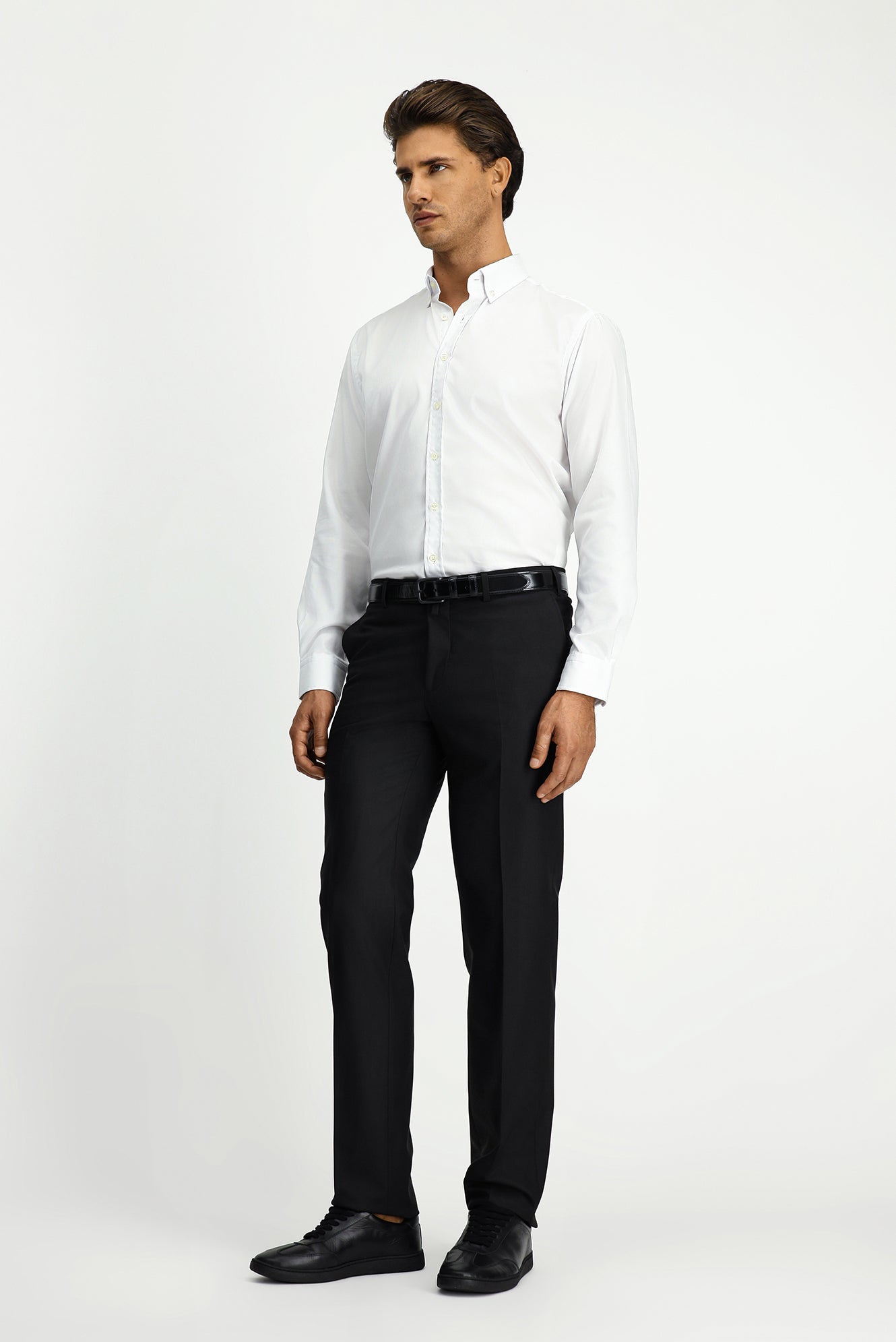 Siyah Relaxed Fit Rahat Kesim Likralı Klasik Kumaş Pantolon