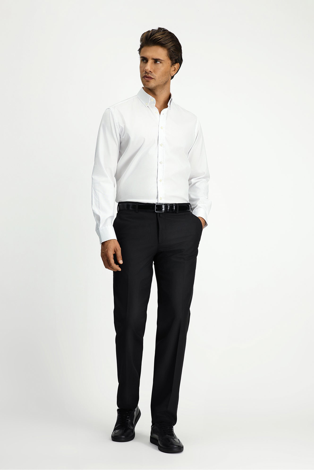Siyah Regular Fit Likralı Klasik Kumaş Pantolon